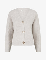 Gilet maille tressée col V boutons dorés - Beige