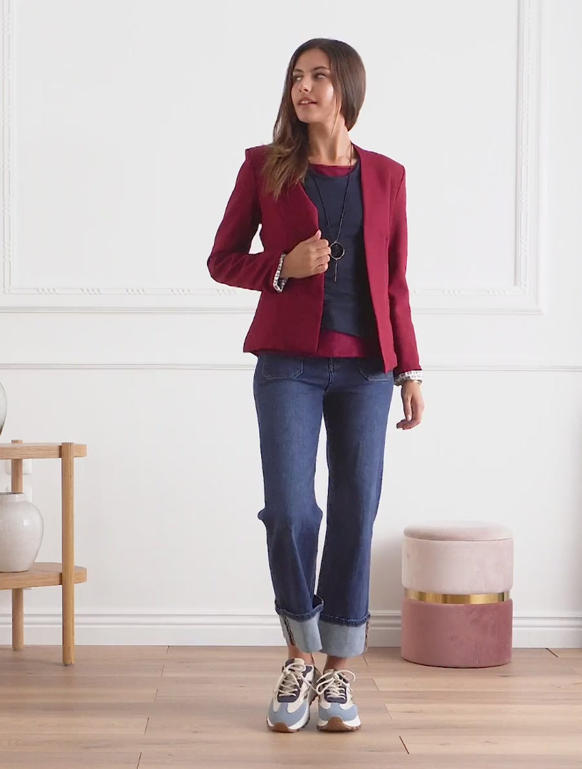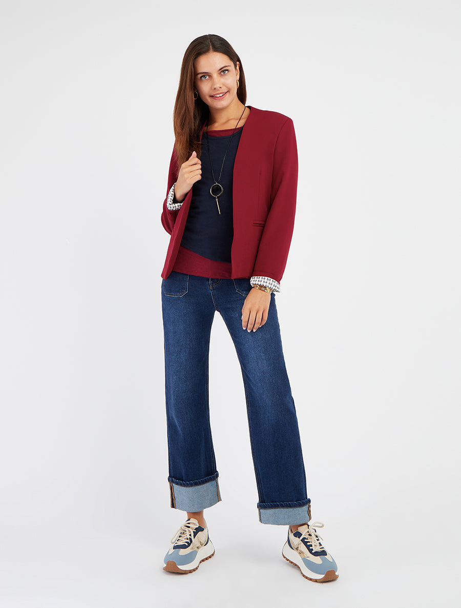 Pull bicolore fermeture zippée latérale - Marine/bordeaux