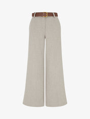Pantalon rayé taille haute avec ceinture - Beige