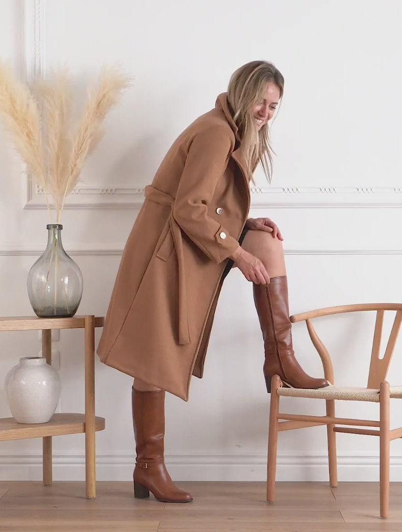 Bottes simili cuir talon bloc et zip - Camel