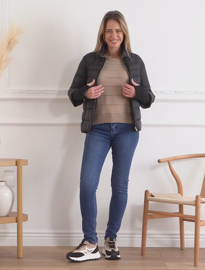 Doudoune matelassée à poignets côtelés - Noir