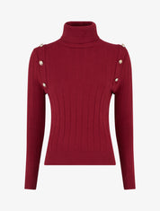 Pull moulant col roulé boutons - Bordeaux