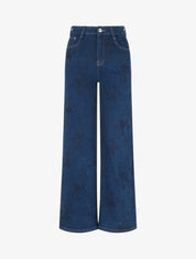 Jean droit à imprimé fleuri 5 poches - Bleu brut