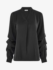 Blouse fluide col V à manches volantées - Noir