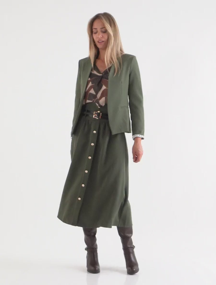 Jupe trapèze taille haute double ceinture - Kaki