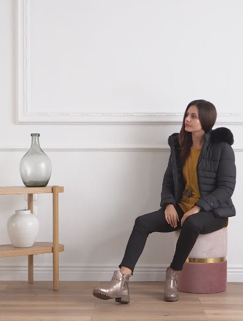 Doudoune capuche fourrure amovible - Noir