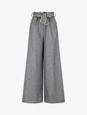 Pantalon rayé taille haute et ceinture brodée - Gris