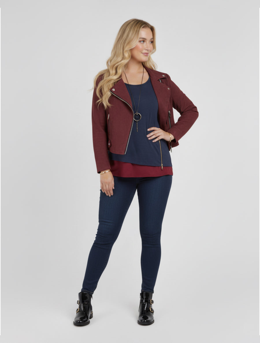 Pull bicolore fermeture zippée latérale - Marine/bordeaux