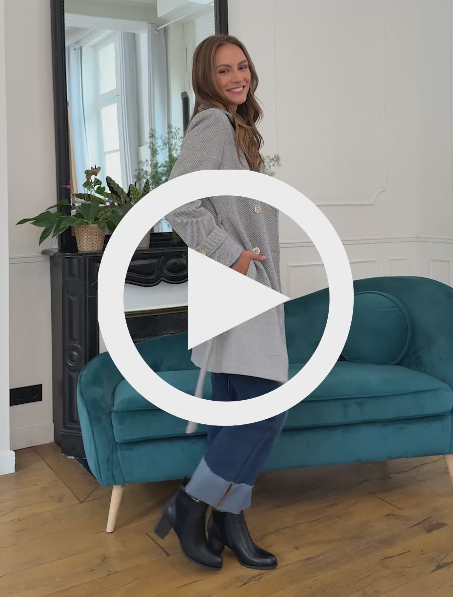 Manteau long texturé à ceinture - Gris clair