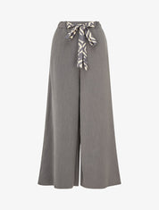 Pantalon ample taille haute à liens - Gris