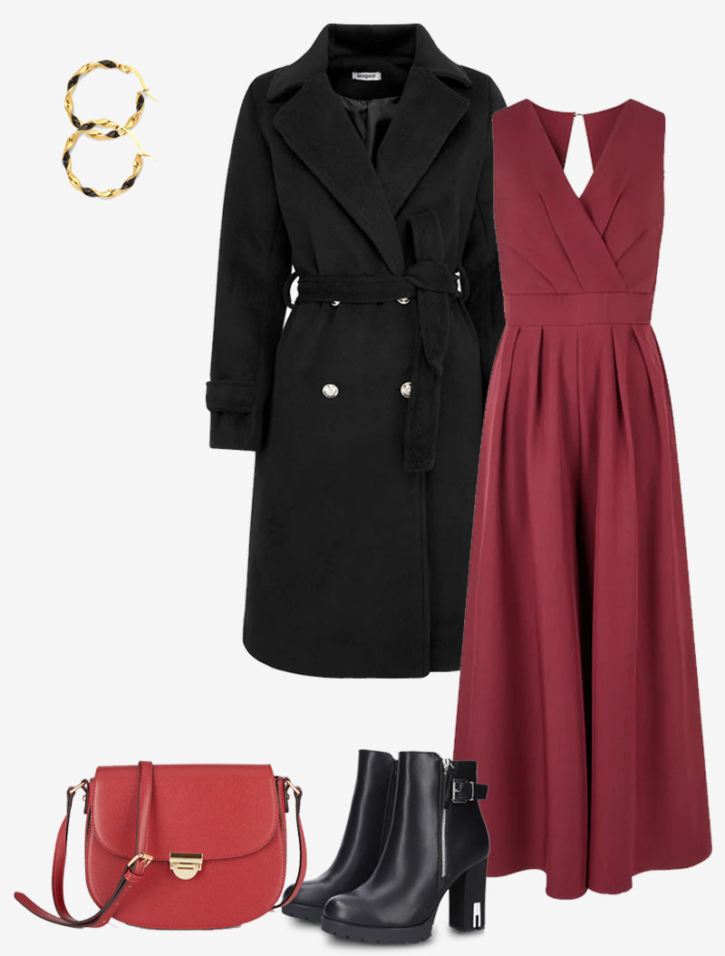 Combinaison col cache-cœur dos boutonné - Bordeaux