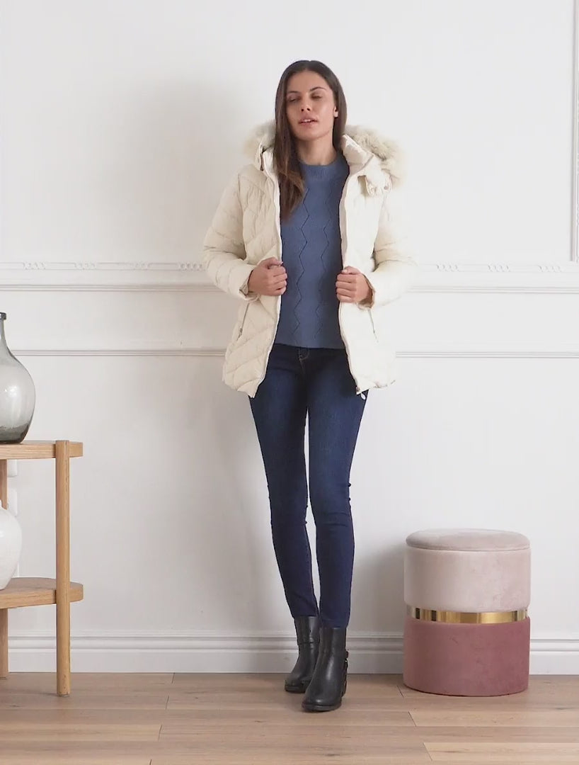 Doudoune capuche fourrure amovible - Crème