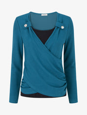 Pull cache-cœur effet trompe-l'œil - Bleu canard