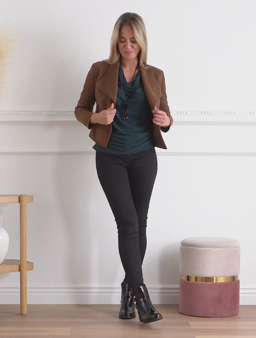 Veste suédine col rabat poches zippées - Marron