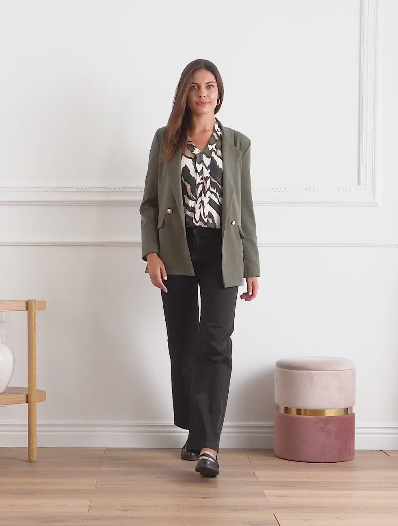 Veste cintrée col cranté 2 boutons - Kaki foncé