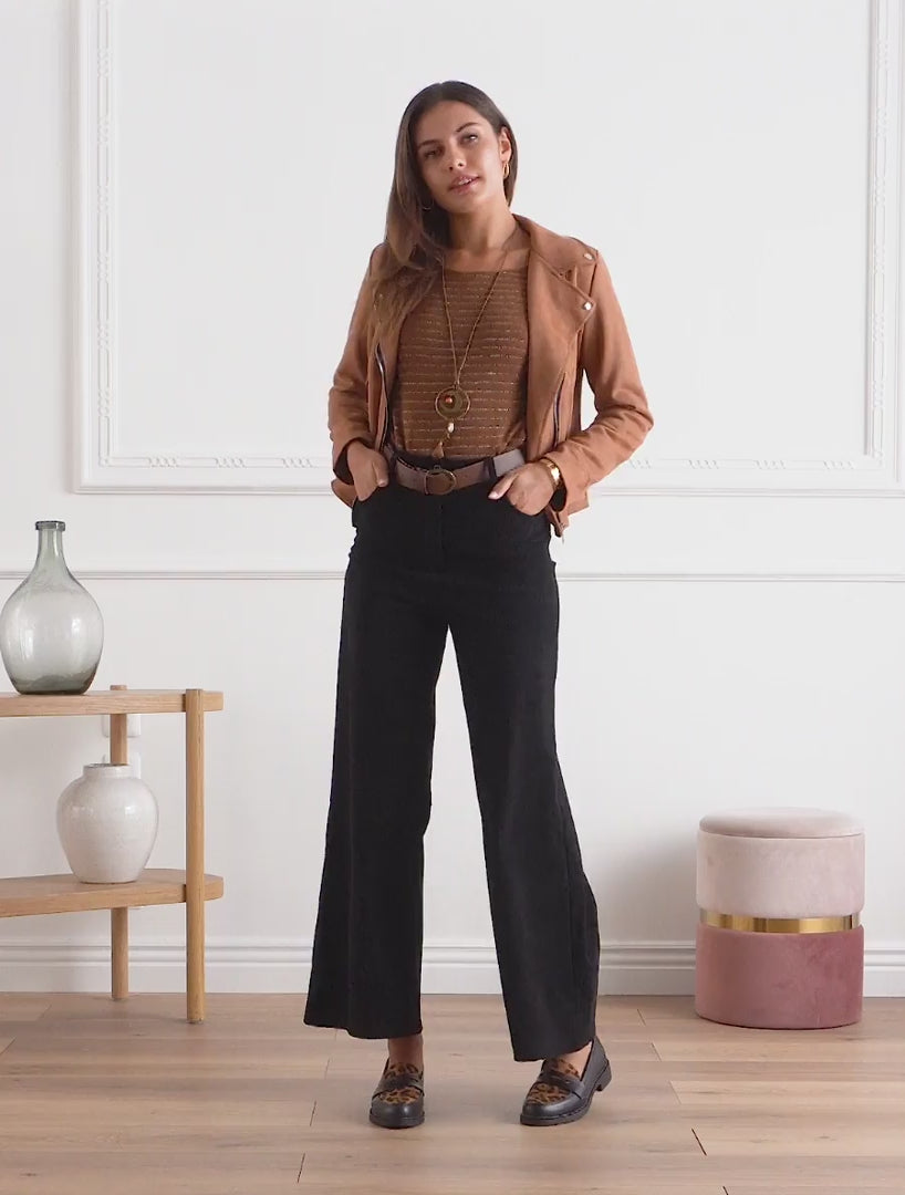 Pantalon droit taille haute ceinture - Noir