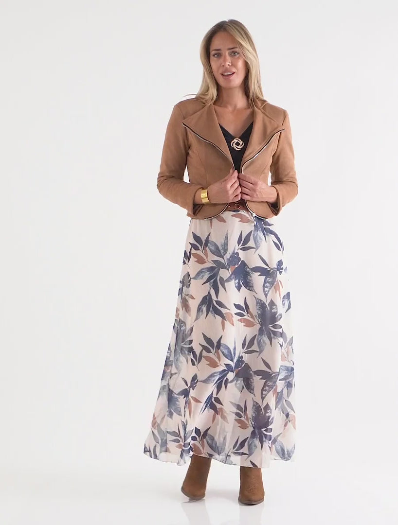 Jupe longue taille haute corset feuillage - Marine