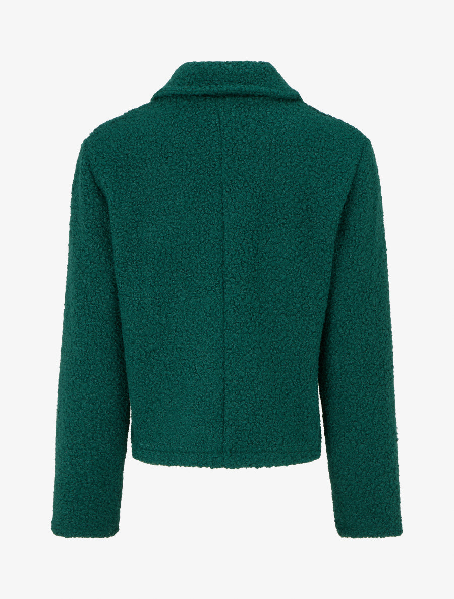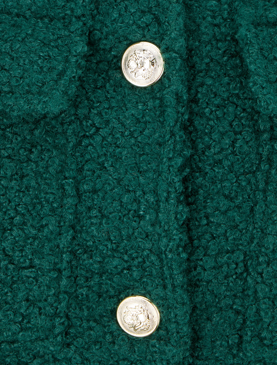 Découvrez cette veste à la texture laine bouclée qui apporte volume et caractère à votre silhouette. Sa coupe droite structurée et son col à pied assurent une allure affirmée, tandis que les deux poches poitrine ajoutent une touche fonctionnelle. Les manches longues et la fermeture boutonnée complètent ce modèle fabriqué en Italie. Parfaite pour composer des tenues automnales sophistiquées, cette pièce en polyester se porte aussi bien au bureau qu'en sortie urbaine. Un indispensable qui traverse les saisons avec style.
