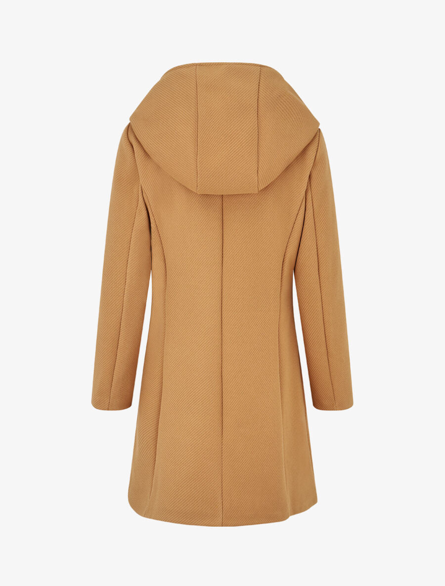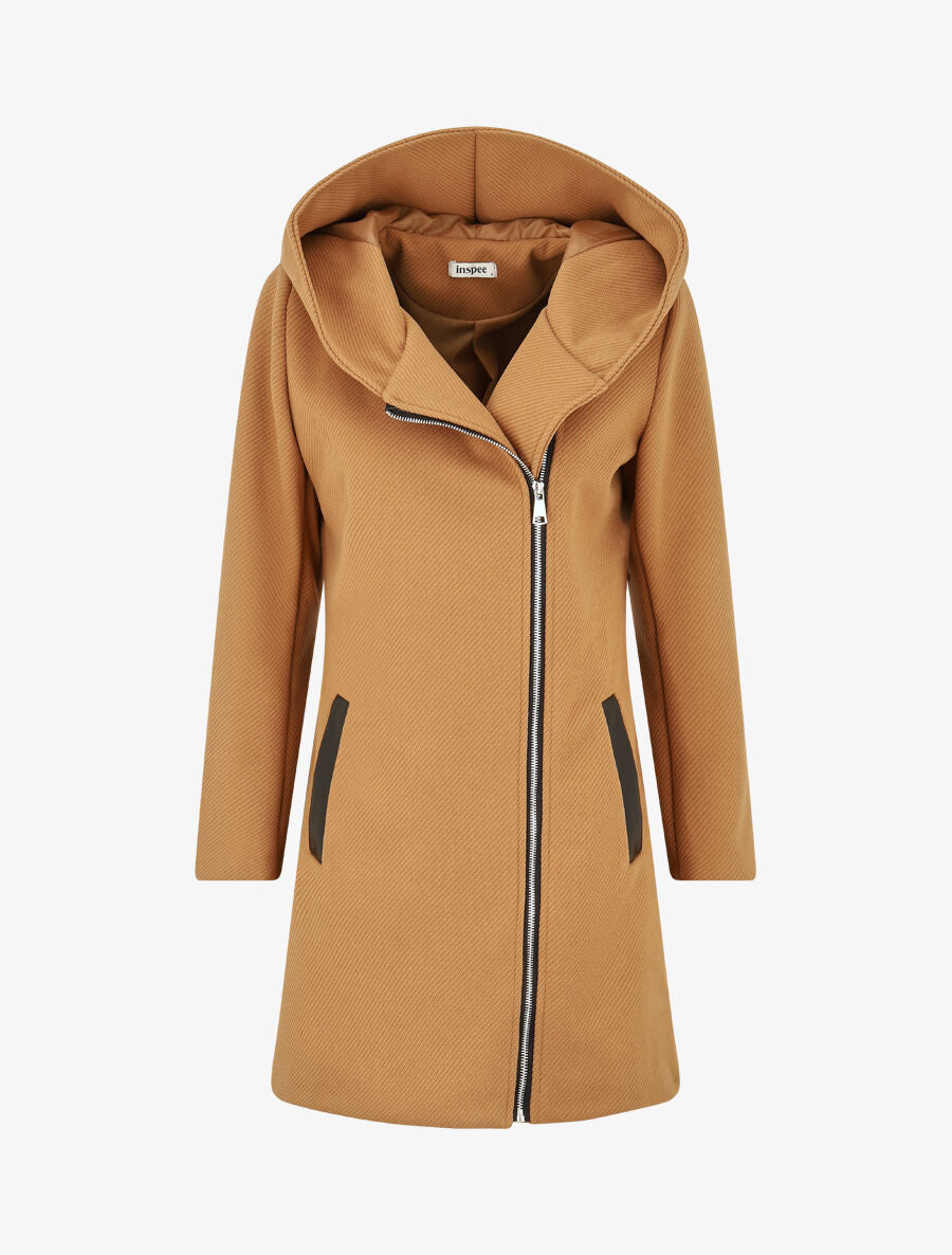 Manteau texturé col montant et capuche - Camel
