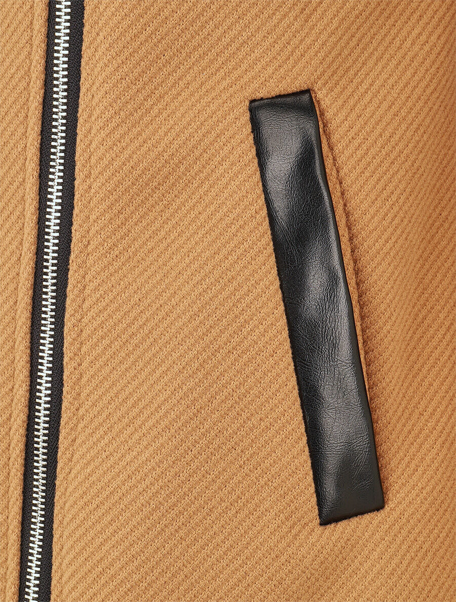 Manteau zippé à poches contrastantes en simili - Camel - 4
