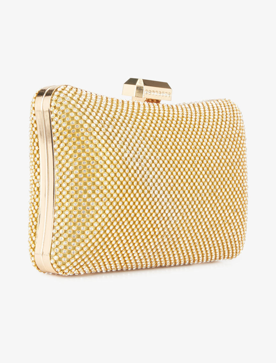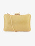 La minaudière Alice en or sublime vos tenues de soirée avec son tissu précieux orné de strass étincelants. Son fermoir à clip présente un détail imprimé grec strassé qui apporte une touche raffinée et distinctive. Avec ses dimensions compactes de 20 x 12 x 5 cm, elle offre un compartiment intérieur doublé de satin pour ranger vos essentiels. La bandoulière chaîne amovible vous permet de la porter à l'épaule ou comme pochette selon vos envies. Un accessoire sophistiqué qui capture la lumière à chaque mouvement.