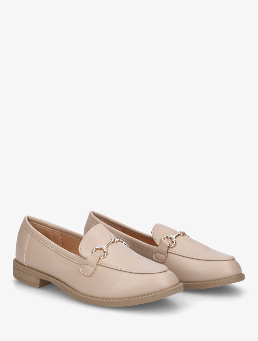 Adoptez l'élégance intemporelle avec ces mocassins beiges en simili cuir. Leur boucle métallique ornée de strass apporte une touche de raffinement à leur design classique. Les bouts ronds garantissent un confort optimal tandis que la semelle chiquet de 2,5 cm assure une allure sophistiquée. Leur système à enfiler facilite le chaussage au quotidien. Parfaits pour vos journées au bureau ou vos sorties décontractées, ces mocassins s'accordent avec pantalons, jupes ou robes. Un essentiel polyvalent qui sublime toutes vos tenues avec caractère.
