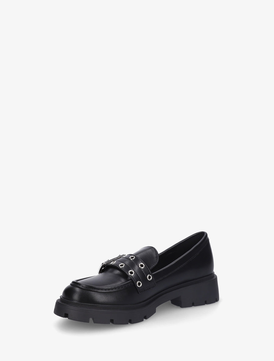 Ces mocassins en simili cuir noir allient confort et sophistication avec leur design intemporel. Leur sangle décorative apporte une touche raffinée, tandis que la semelle crantée assure une excellente adhérence. Le talon de 3 cm offre un maintien idéal pour un port quotidien. Faciles à enfiler grâce à leur coupe pratique, ils se distinguent par leurs bouts ronds élégants. Parfaits pour vos journées au bureau ou vos sorties décontractées, ces mocassins s'accordent avec toutes vos tenues. Un modèle polyvalent qui deviendra rapidement un incontournable de votre garde-robe.