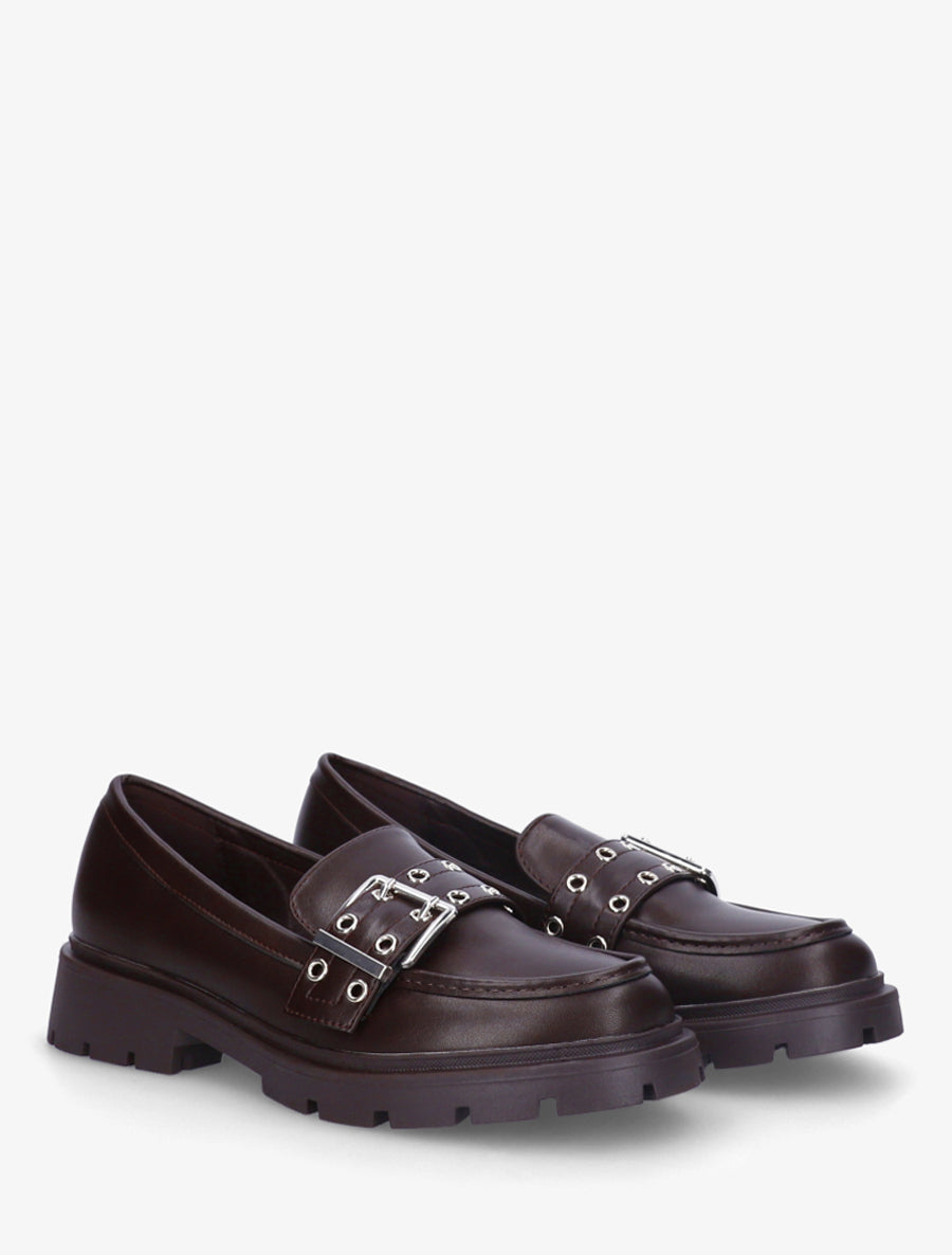 Adoptez le style intemporel avec ces mocassins en simili cuir marron, rehaussés d'une sangle décorative qui apporte une touche d'originalité. Leur talon de 3 cm et leur semelle crantée assurent confort et stabilité au quotidien. Faciles à enfiler grâce à leur conception sans lacets, ces mocassins à bouts ronds s'intègrent parfaitement à vos tenues décontractées comme professionnelles. Le simili cuir offre un rendu élégant tout en facilitant l'entretien. Un choix pratique et tendance pour compléter votre garde-robe.