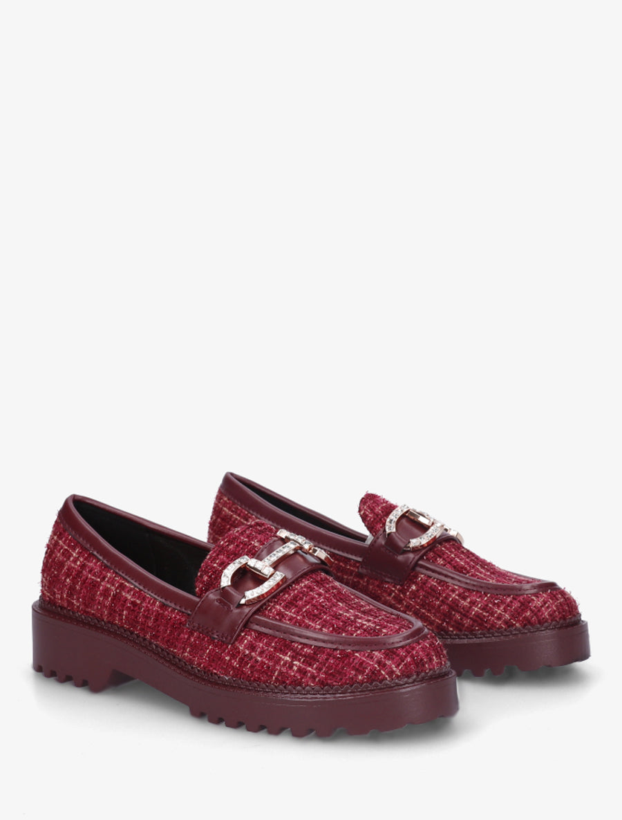 Mocassins tweed boucle strass semelle crantée - Bordeaux