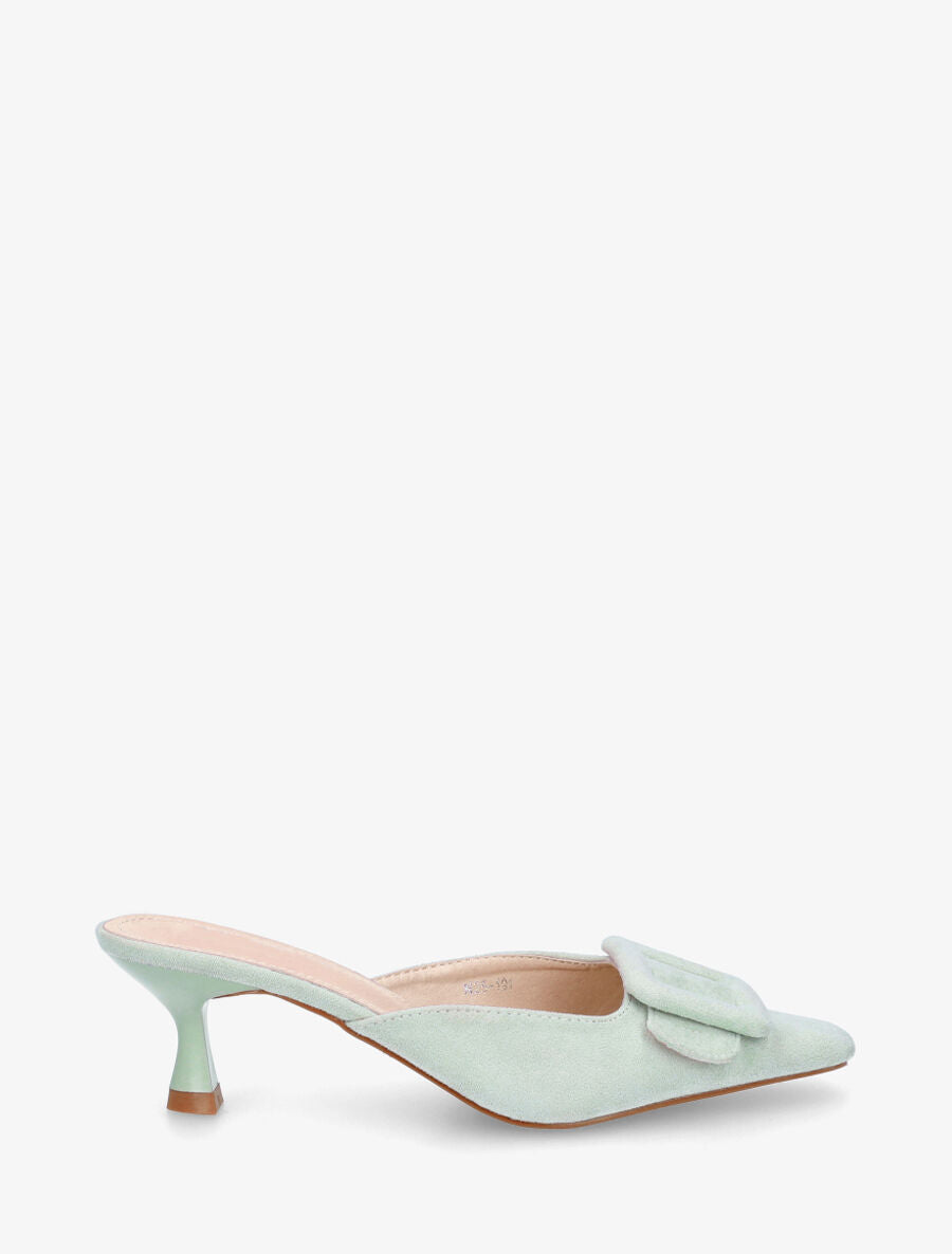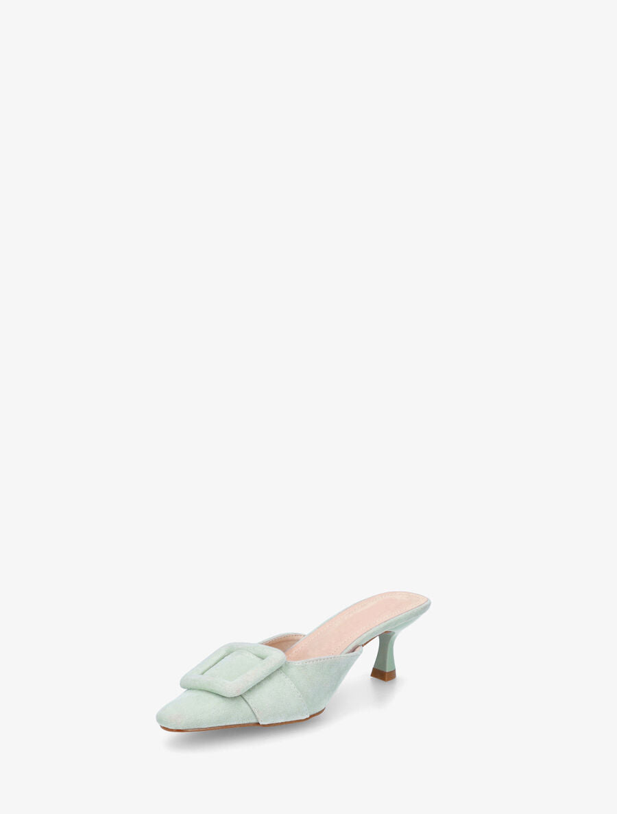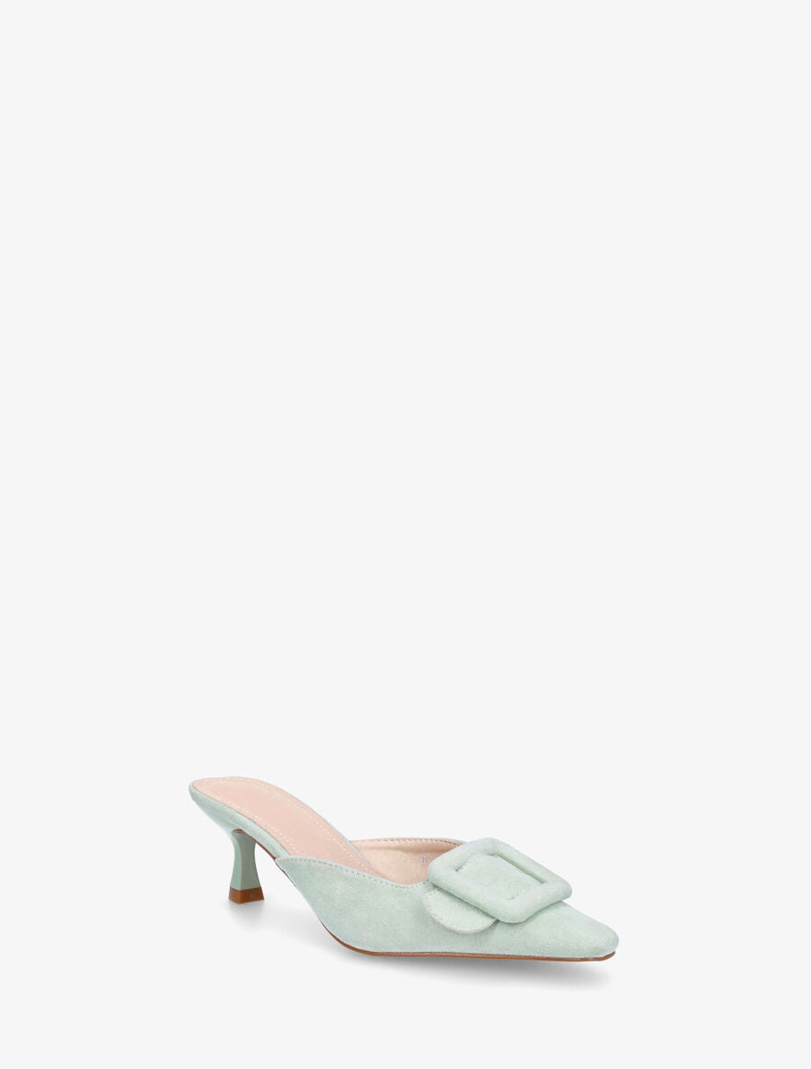 Mules suédine talon compensé bout pointu - Vert d'eau
