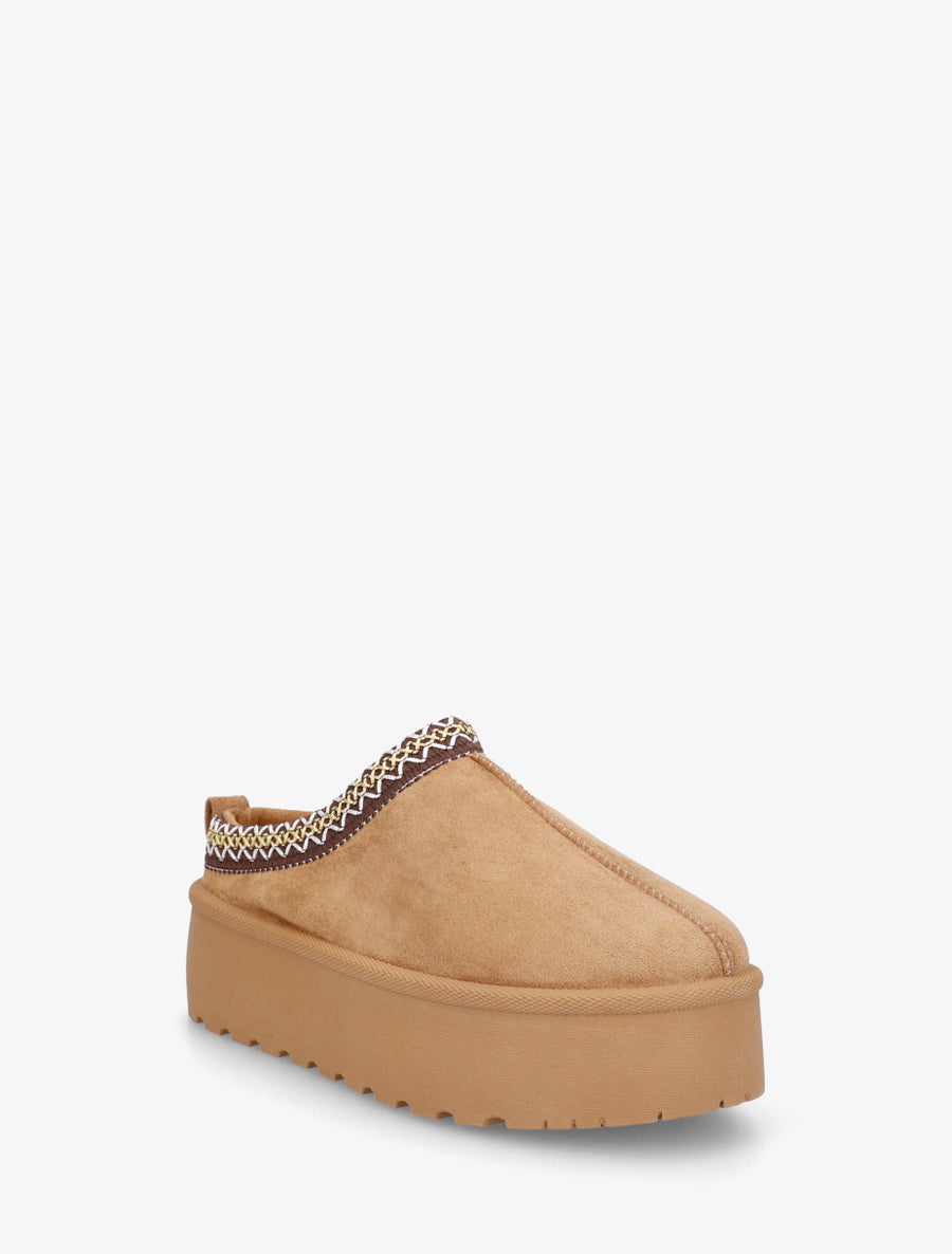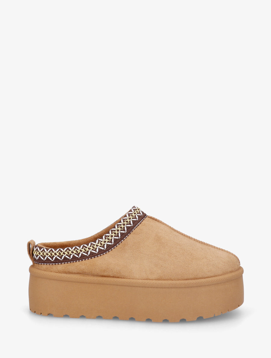 Mules fourrées broderies suédine - Camel