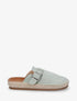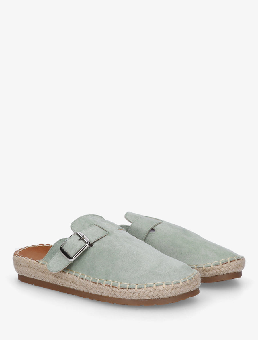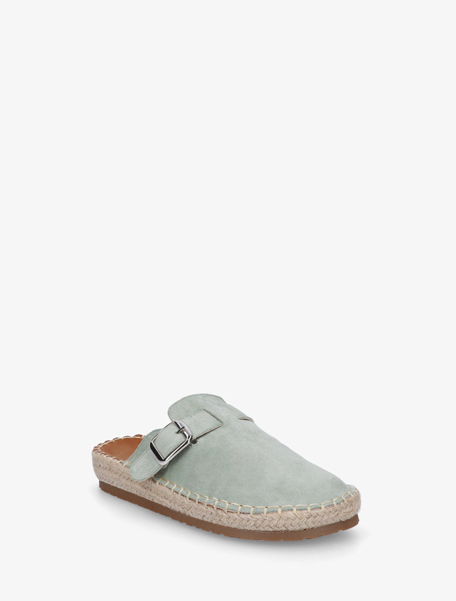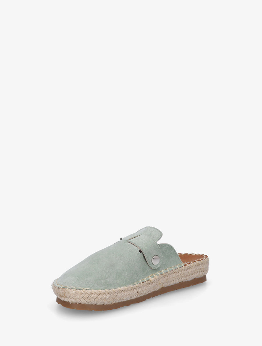 Ces mules en suédine adoptent l'esprit décontracté des espadrilles avec une touche contemporaine. La semelle plate en raphia de 3 cm apporte une légèreté naturelle, tandis que la bride à boucle ajustable assure un maintien optimal. Leur bout rond et leur système à enfiler garantissent un confort immédiat. Le vert d'eau apporte une fraîcheur estivale qui sublime toutes vos tenues décontractées. Parfaites pour vos journées ensoleillées, elles se glissent facilement dans votre sac pour accompagner vos escapades en ville comme en vacances.