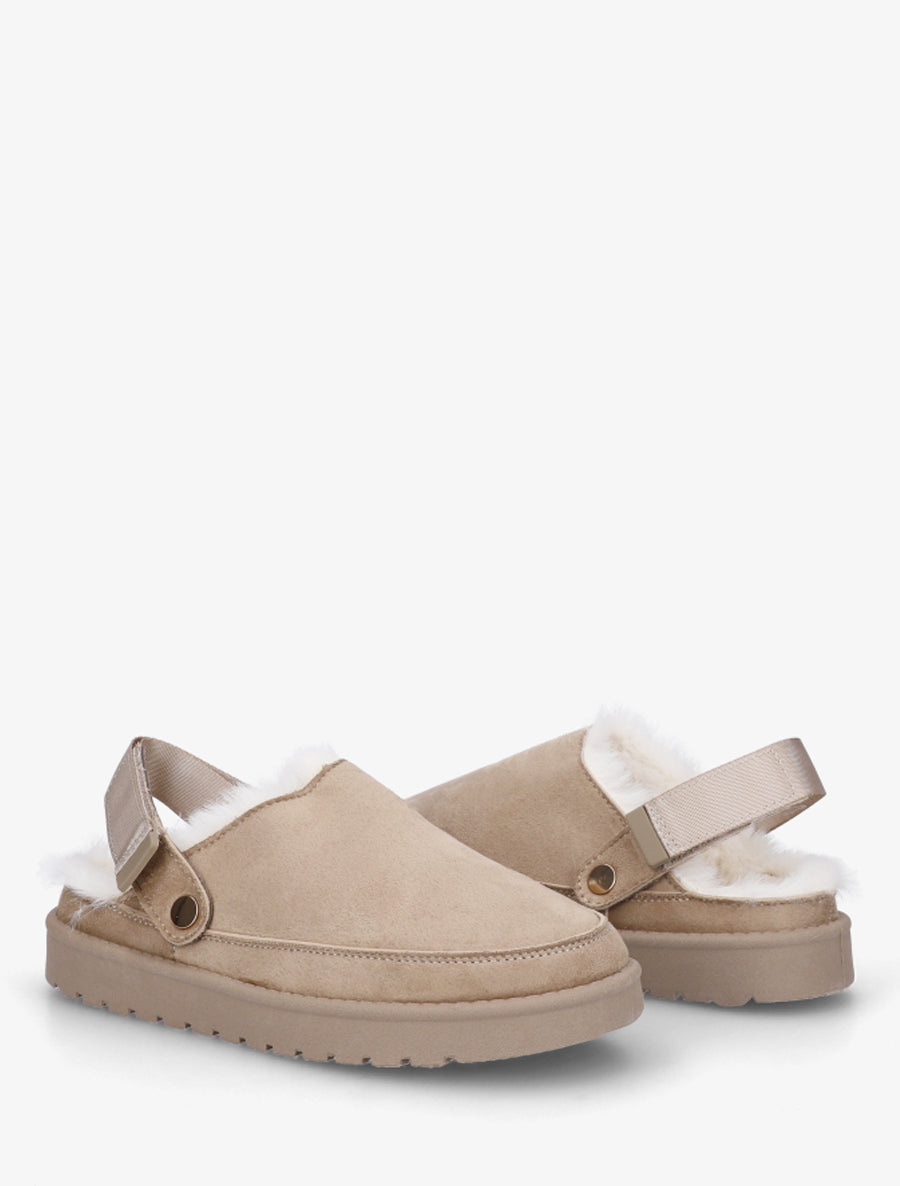 Adoptez le confort absolu avec ces mules sabots en suédine taupe, parfaites pour la saison froide. Leur intérieur entièrement fourré garantit une chaleur enveloppante, tandis que la lanière ajustable à scratch assure un maintien personnalisé. La semelle crantée de 3 cm offre adhérence et stabilité au quotidien. Faciles à enfiler grâce à leur coupe sabot et leurs bouts ronds, ces mules allient praticité et douceur. Un indispensable pour vos moments cocooning à la maison ou vos sorties décontractées hivernales.