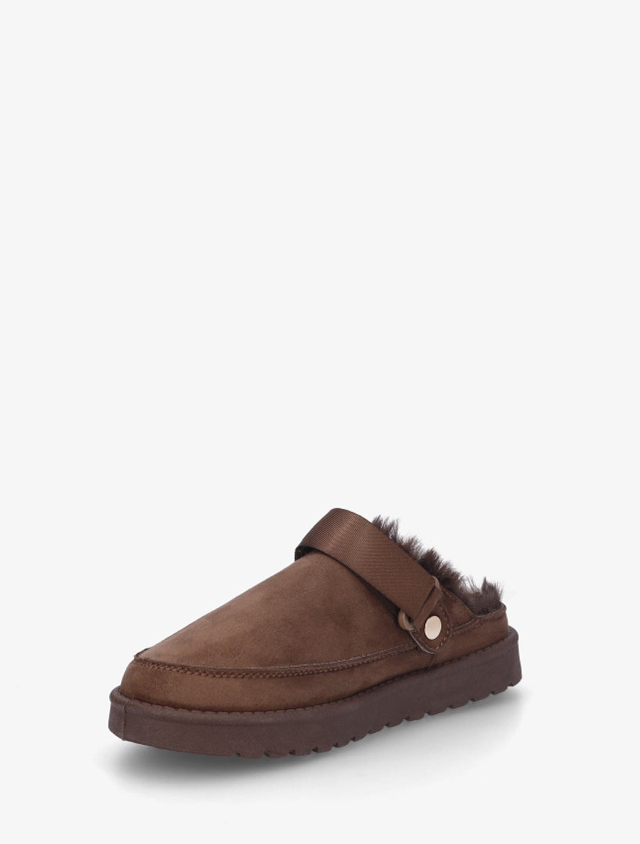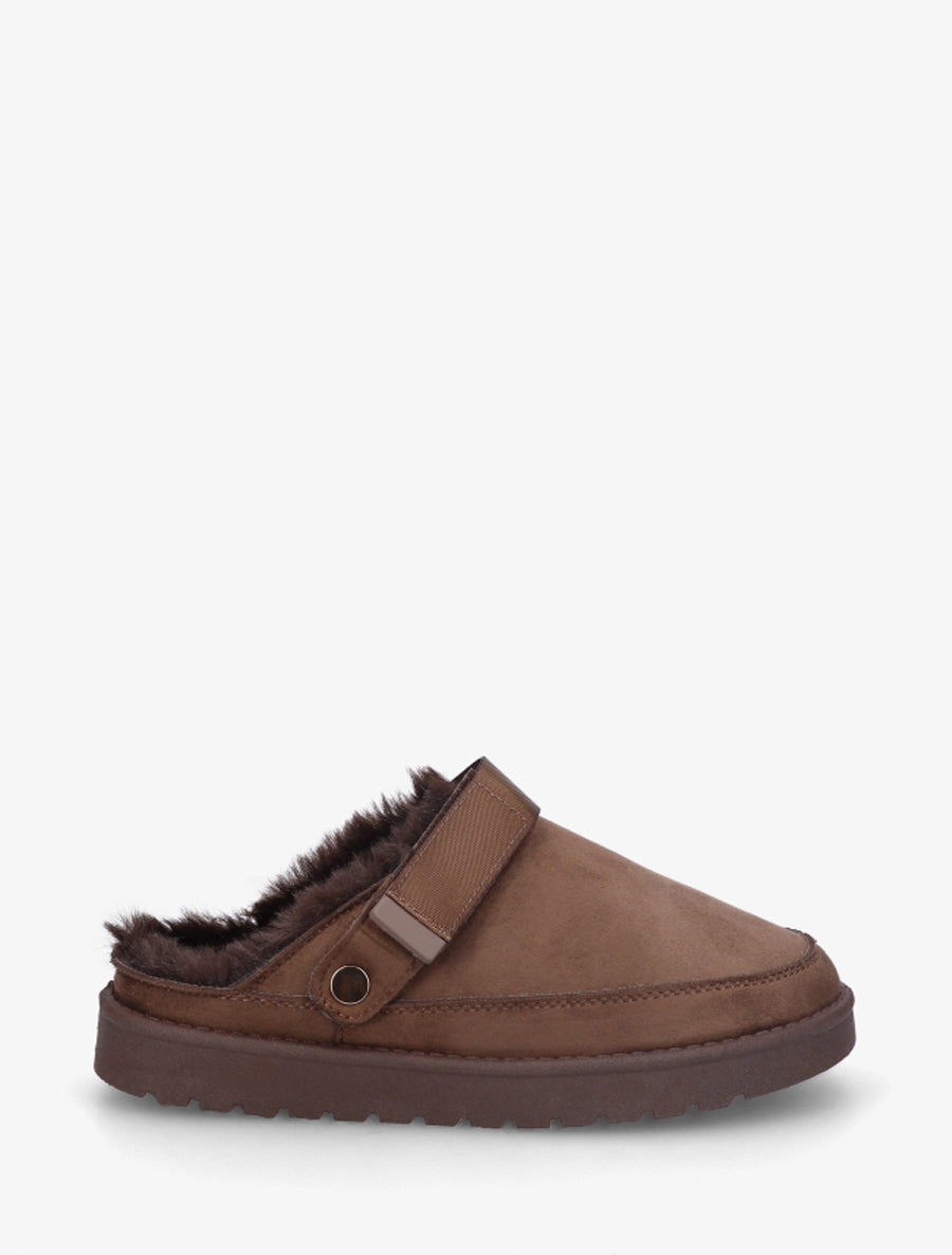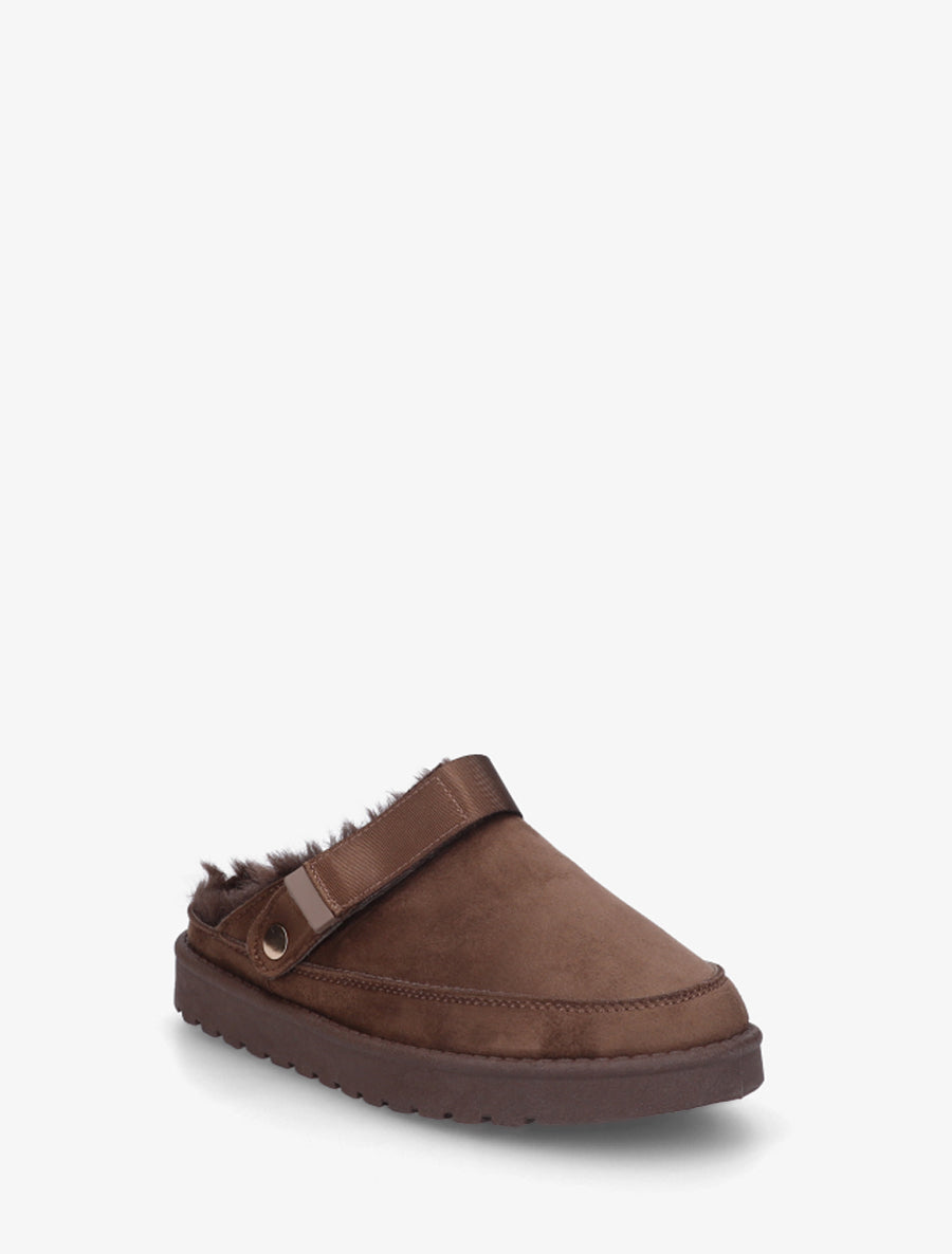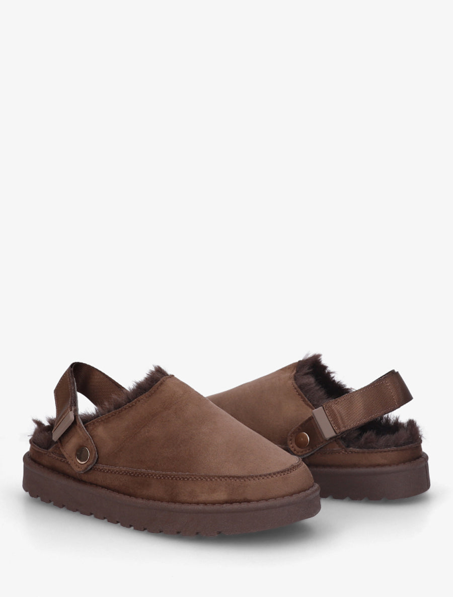Mules sabots fourrées scratch ajustable - Marron