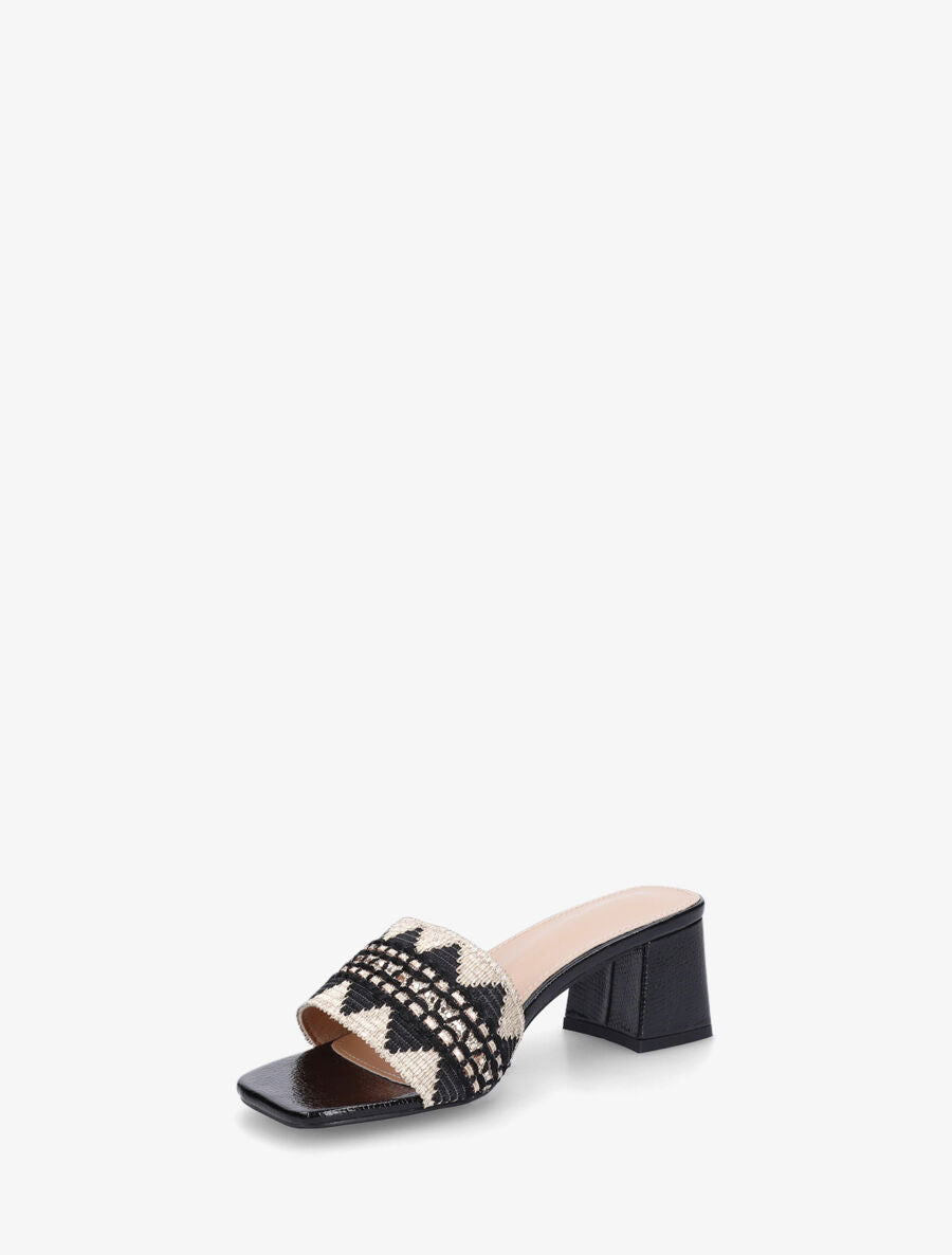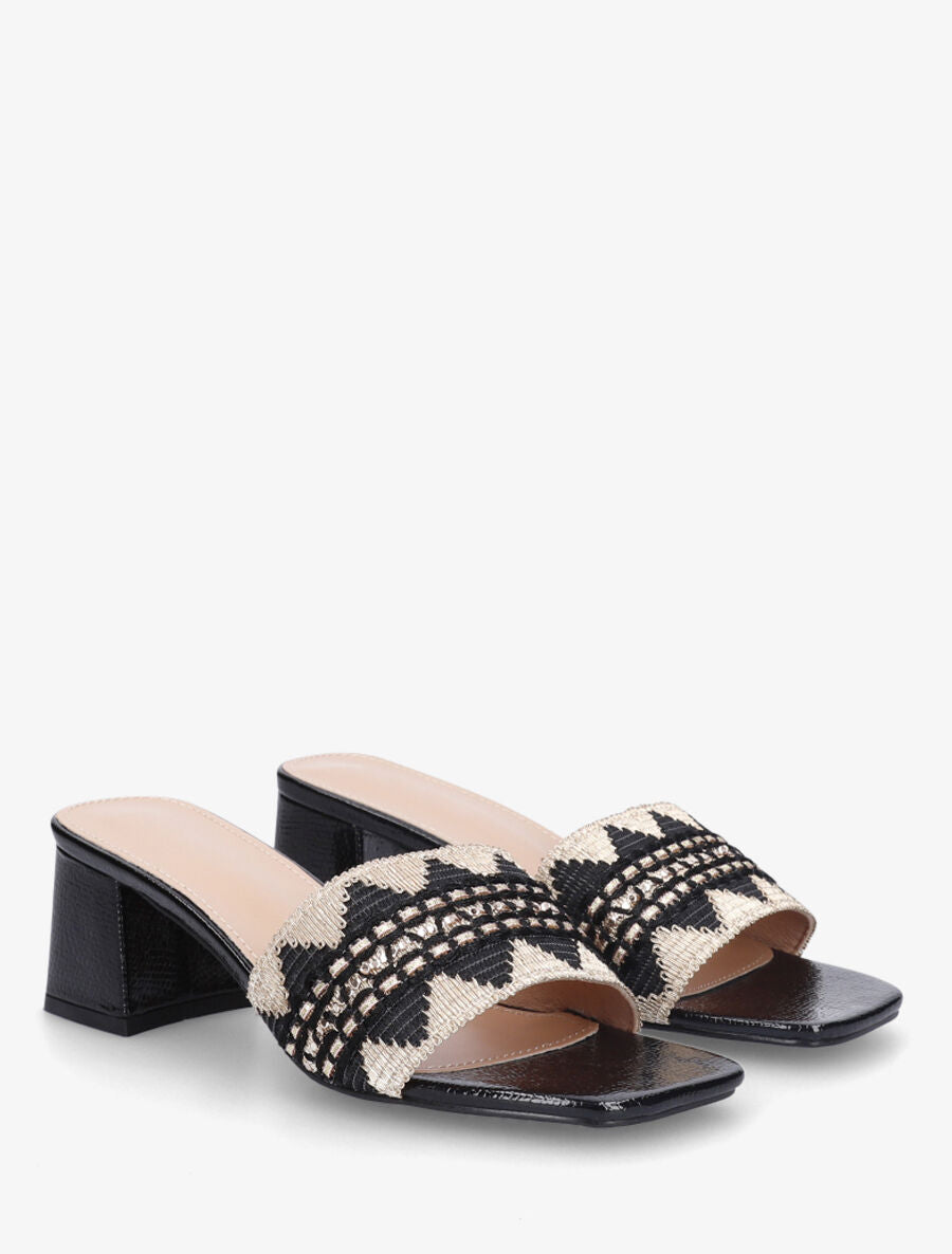 Découvrez ces mules sophistiquées qui allient modernité et confort. Confectionnées en tissu jacquard avec motif zigzag et détails en simili nacré irisé, elles apportent une touche d'originalité à vos tenues. Le talon carré de 6 cm assure stabilité et élégance au quotidien. Leur bride jacquard et leurs bouts ouverts offrent un style décontracté et tendance. Faciles à enfiler, ces mules deviennent l'atout idéal pour vos journées ensoleillées ou vos soirées estivales. Un modèle polyvalent qui sublime instantanément votre garde-robe.