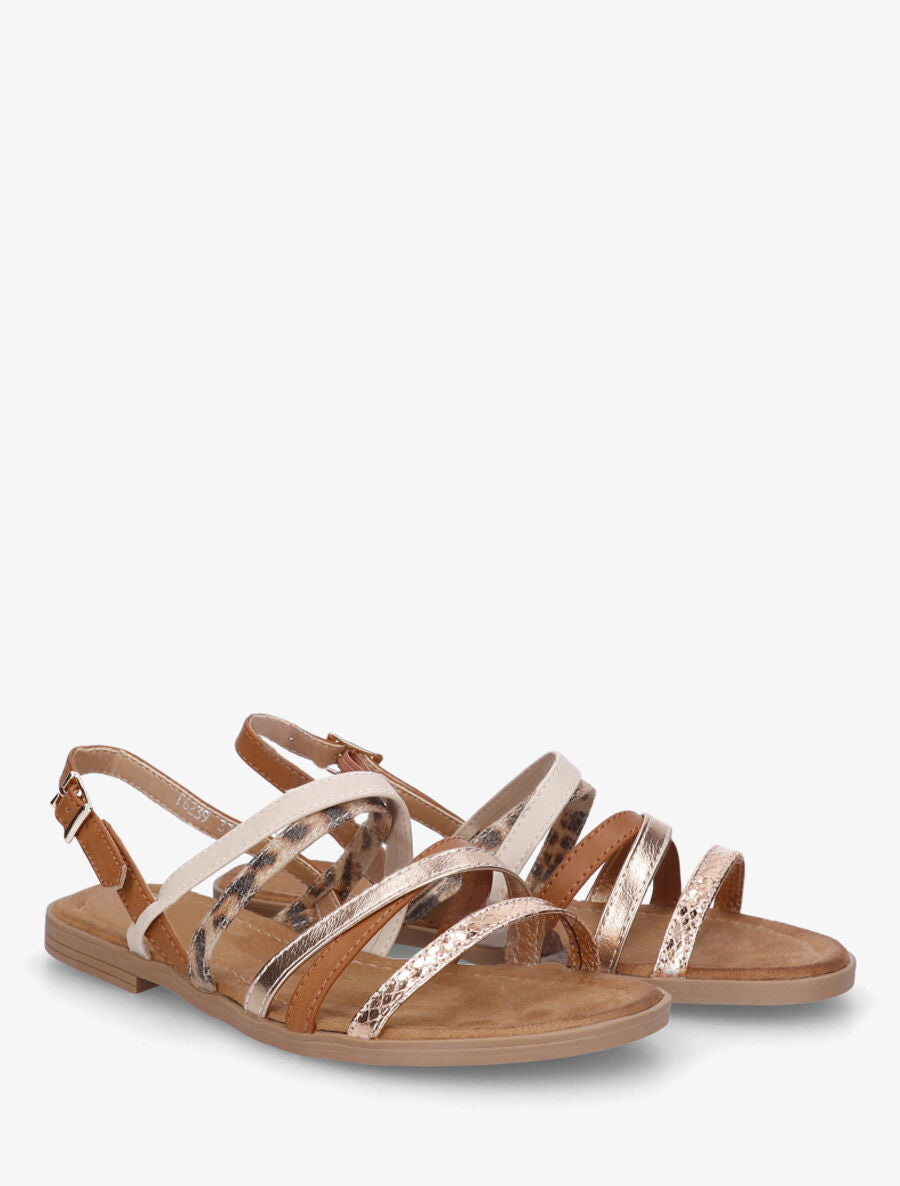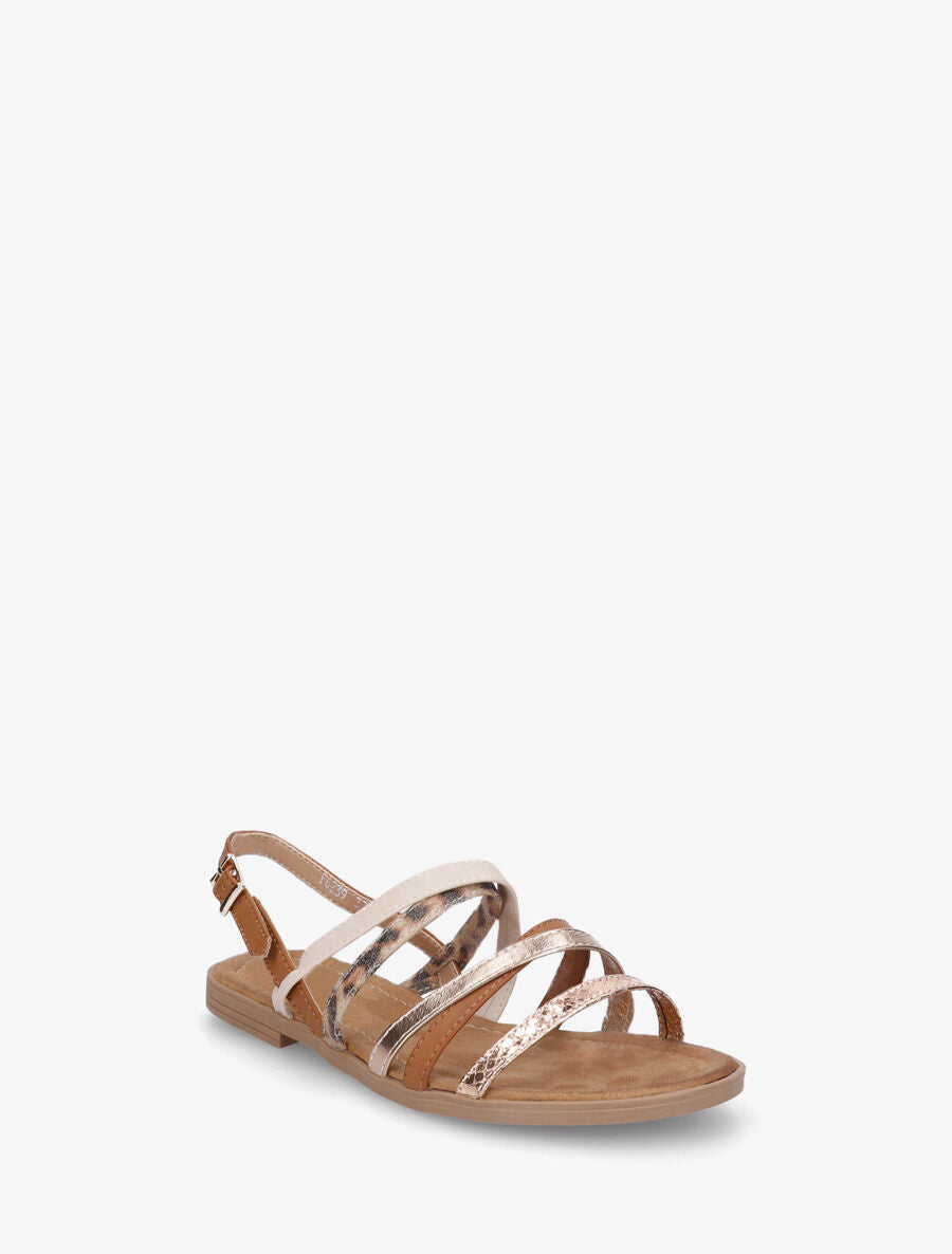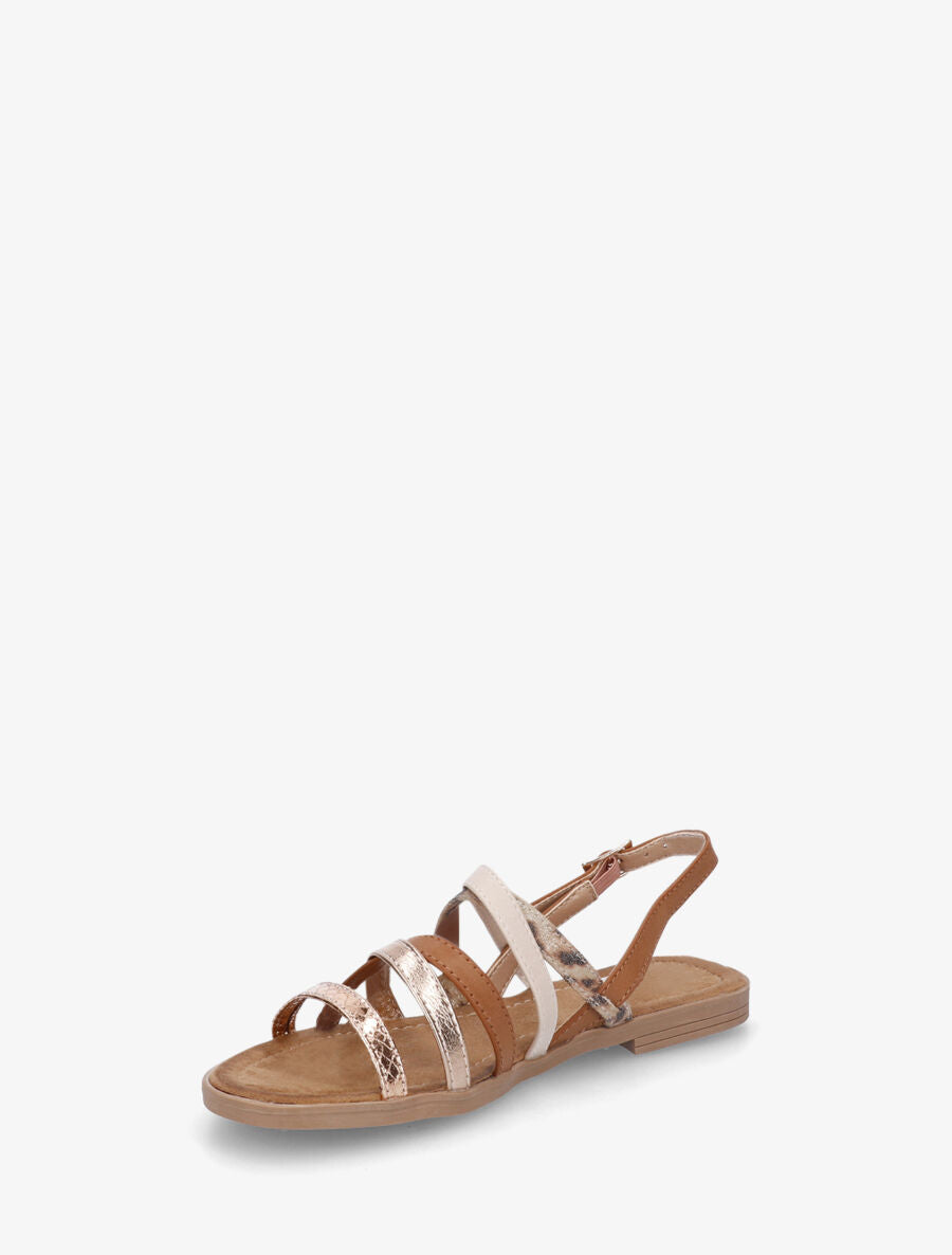 Nu-pieds à multi brides dépareillées - Camel - 2