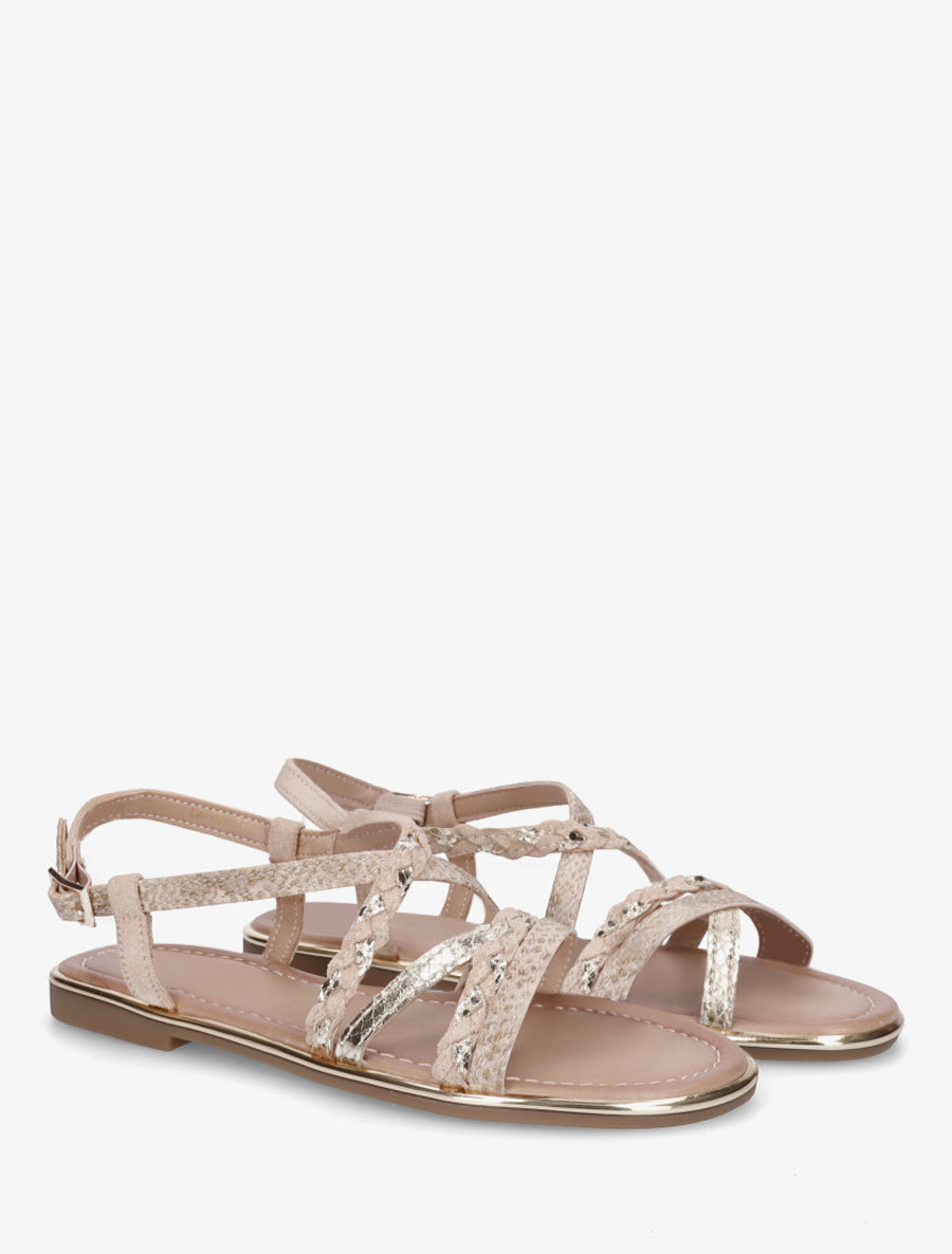Ces nu-pieds beiges en simili cuir séduisent par leurs brides fantaisies tressées et croisées qui apportent une touche d'originalité à votre look estival. La bride à boucle au tour de cheville assure un maintien optimal tandis que les bouts ouverts garantissent une aération parfaite. Dotés d'une semelle chiquet de 1,5 cm de hauteur, ils offrent un confort discret pour vos journées ensoleillées. Parfaits pour accompagner une robe légère ou un short en toile, ces sandales s'imposent comme l'allié idéal de vos tenues décontractées.