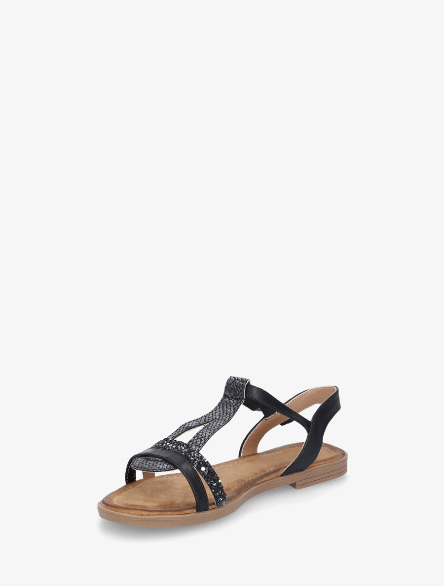 Nu-pieds en simili à brides effet python et pailleté - Noir - 2