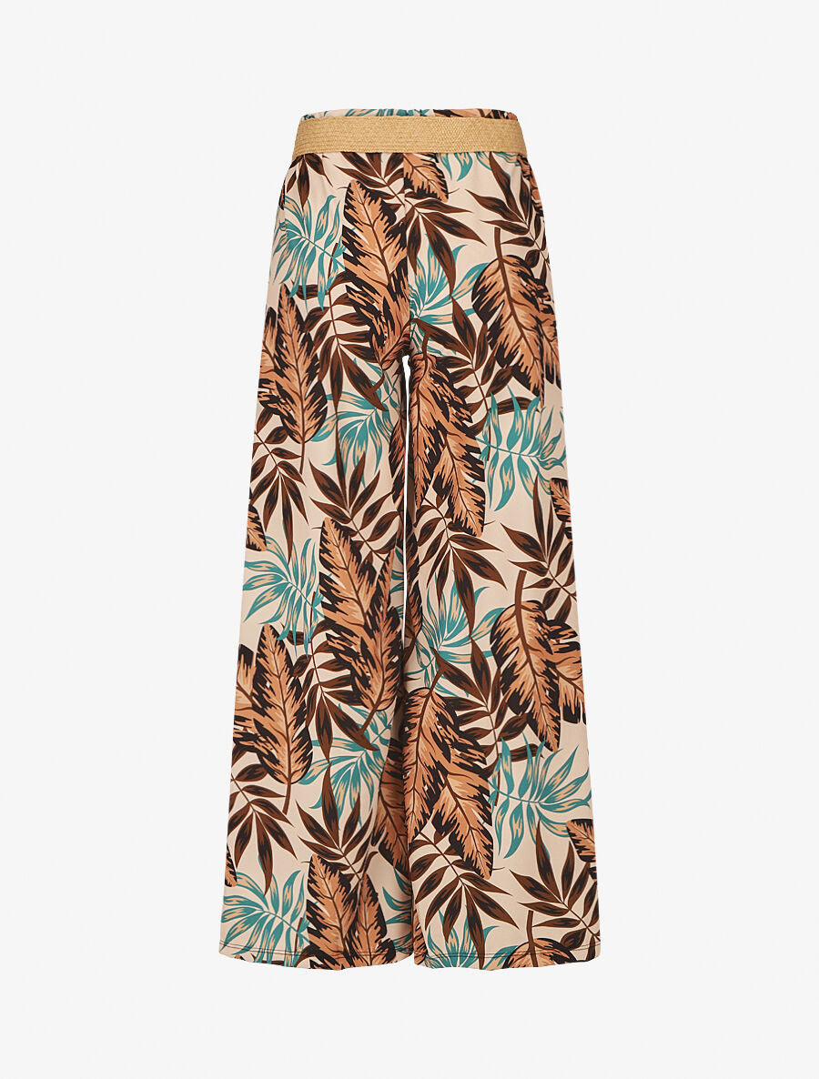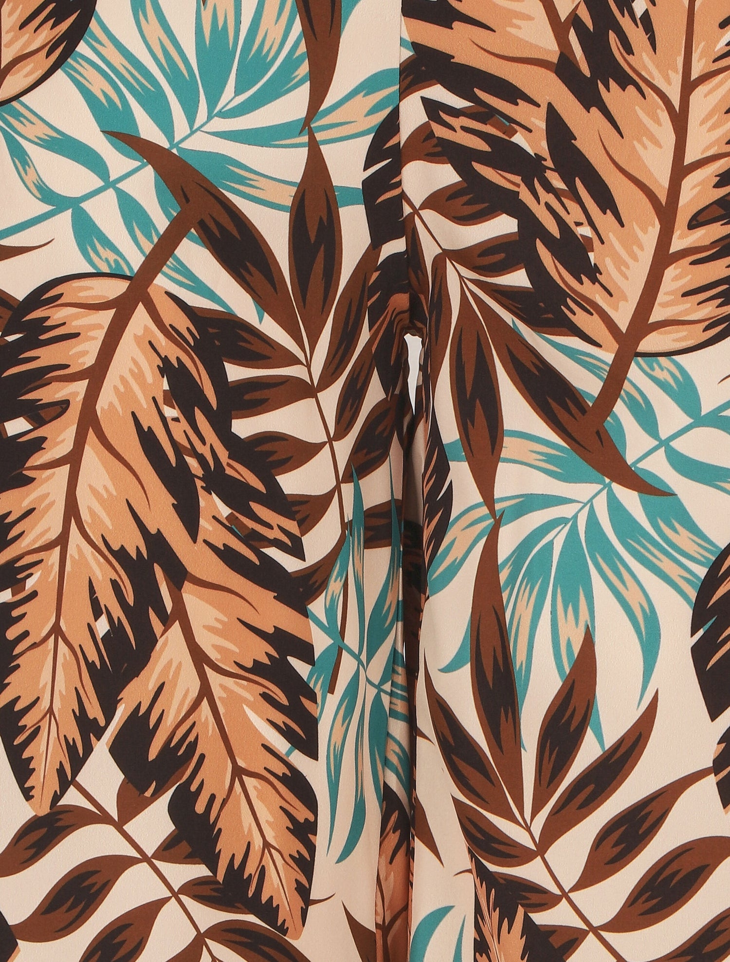 Adoptez un style estival raffiné avec ce pantalon ample à imprimé tropical beige, confectionné en Italie. Sa coupe ample et sa taille haute élastiquée garantissent un confort optimal tout au long de la journée. Pratique à enfiler, il est livré avec une ceinture assortie pour parfaire votre silhouette. Le motif tropical apporte une touche d'évasion et de fraîcheur à votre garde-robe. Parfait pour vos journées ensoleillées ou vos soirées décontractées, ce pantalon en polyester se porte facilement avec une blouse fluide ou un top ajusté. Une pièce polyvalente qui allie élégance décontractée et confort absolu.