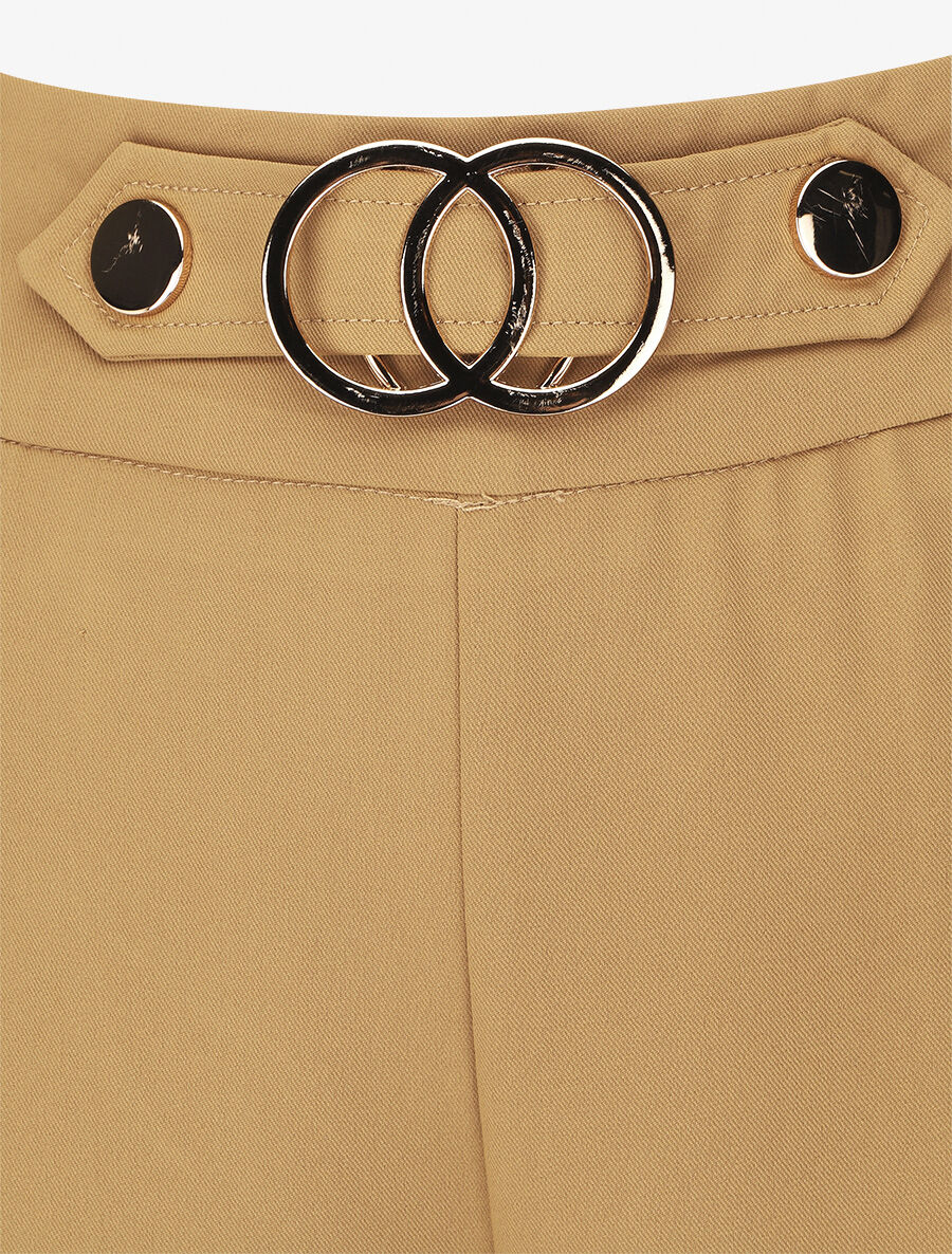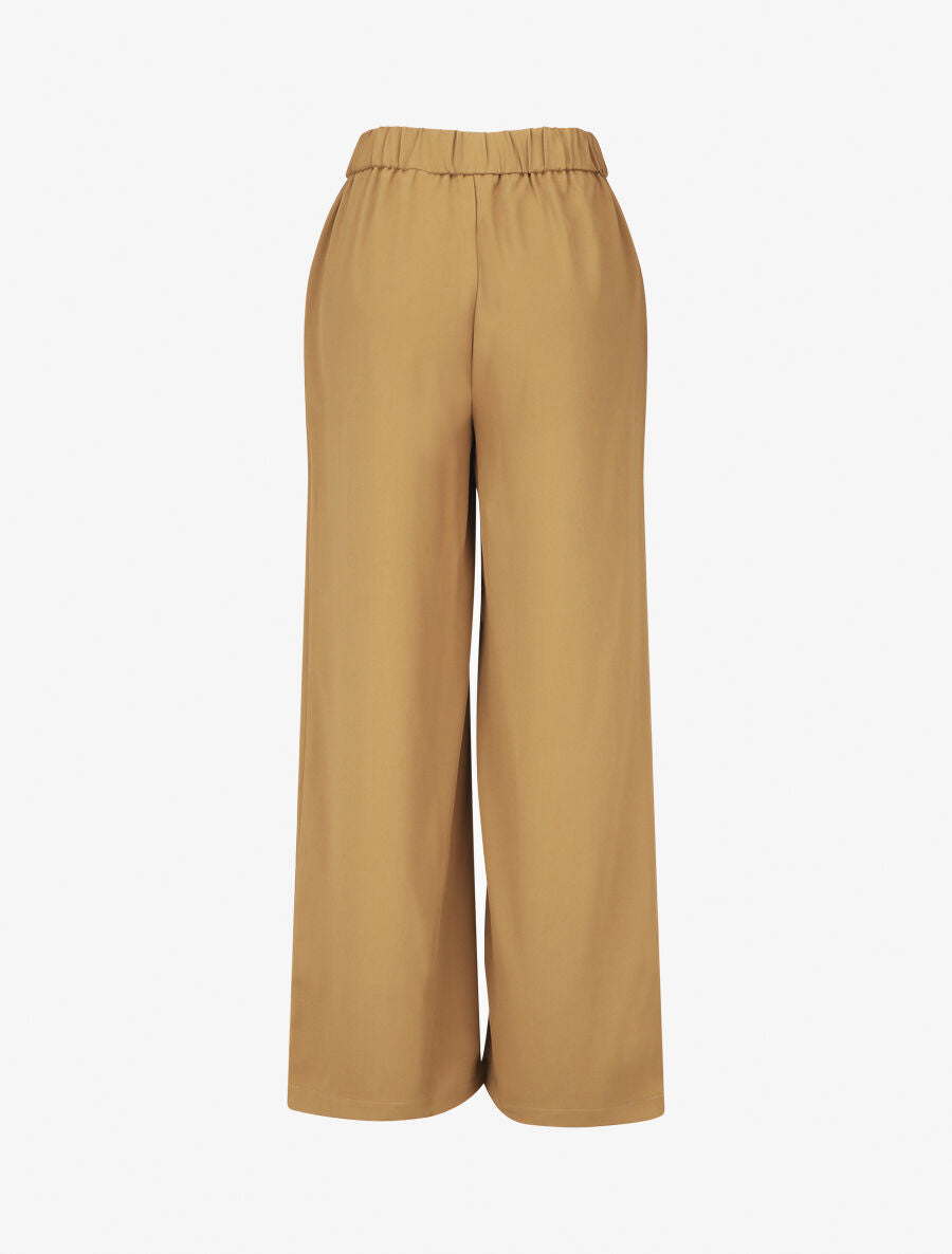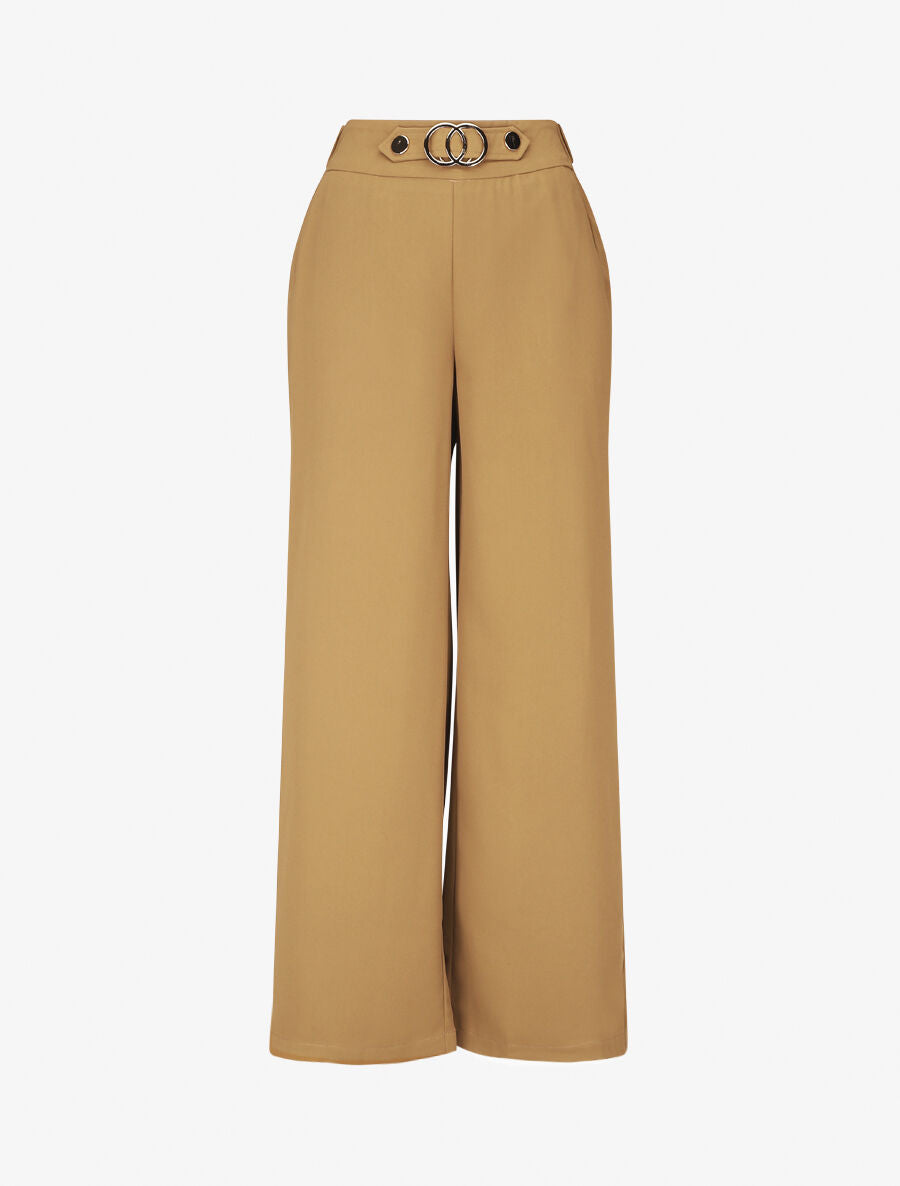 Adoptez ce pantalon camel à la coupe ample et confortable qui sublime votre silhouette. Sa taille haute élastiquée assure un maintien optimal tout au long de la journée, tandis que la boucle ronde apporte une touche raffinée et moderne. Doté de deux poches pratiques et d'un système à enfiler, ce modèle uni en polyester extensible offre une liberté de mouvement incomparable. Parfait pour composer des tenues décontractées comme professionnelles, il se coordonne aisément avec vos hauts préférés. Un essentiel polyvalent qui allie style et praticité au quotidien.