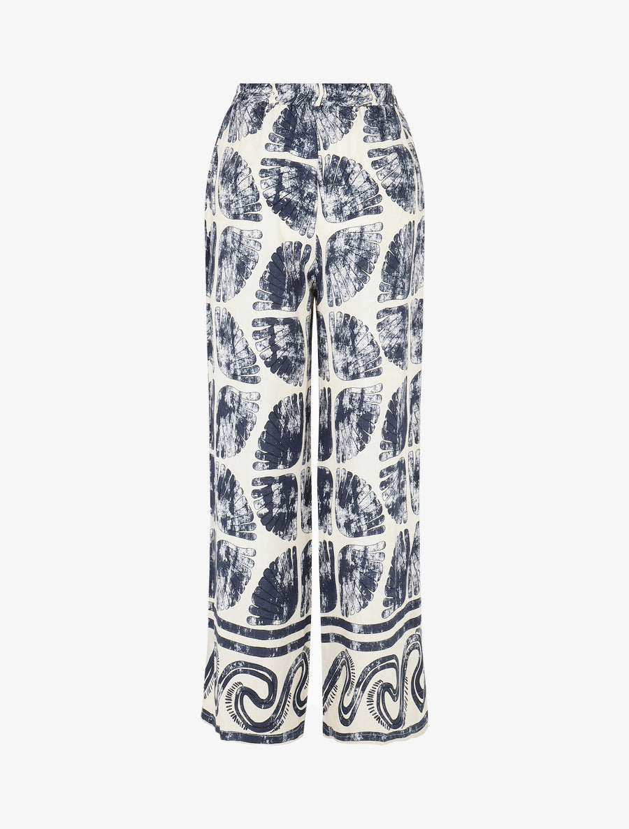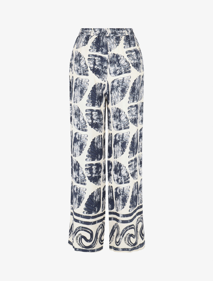Pantalon fluide imprimé fantaisie taille haute - Marine