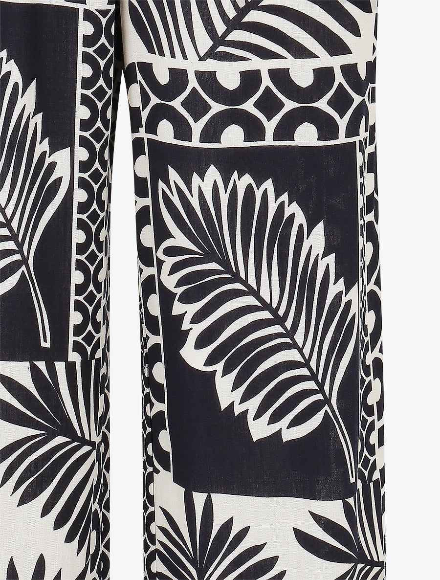Pantalon droit taille haute imprimé tropical - Marine - 3
