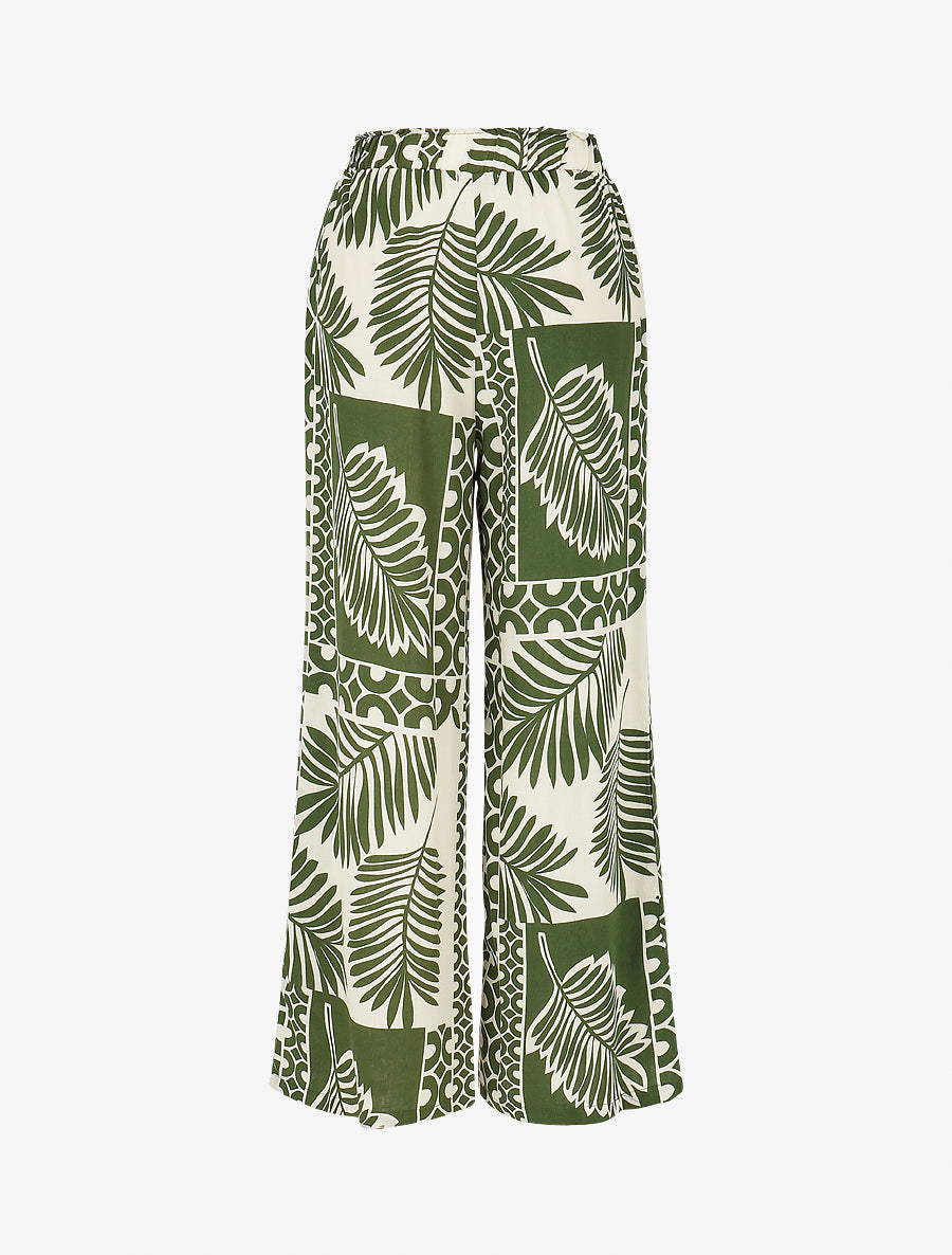 Pantalon fluide imprimé tropical coupe droite - Kaki