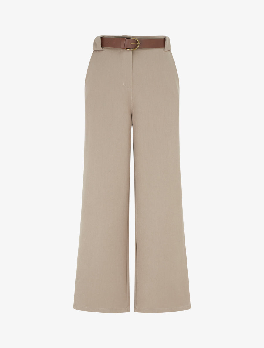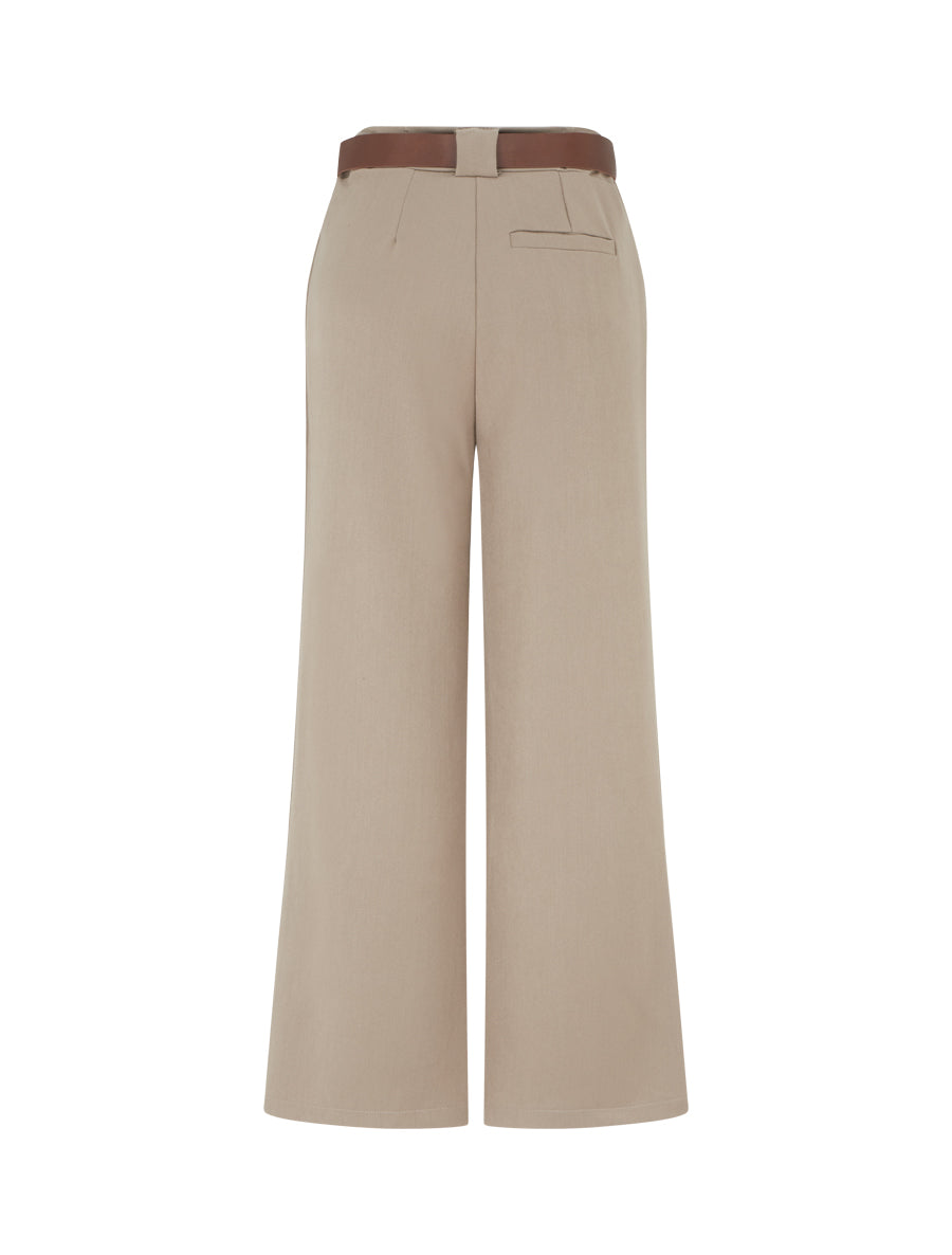 Ce pantalon taille haute taupe clair affiche une coupe droite intemporelle et raffinée. Confectionné en Italie dans un mélange polyester-viscose-élasthanne, il offre confort et liberté de mouvement. Doté de deux poches latérales et d'une poche arrière décorative, il se ferme par zip et bouton. Sa ceinture incluse permet d'ajuster la silhouette selon vos envies. Une pièce polyvalente qui s'intègre facilement dans une garde-robe moderne, idéale pour composer des tenues professionnelles comme décontractées. Fabriqué avec soin en Italie.