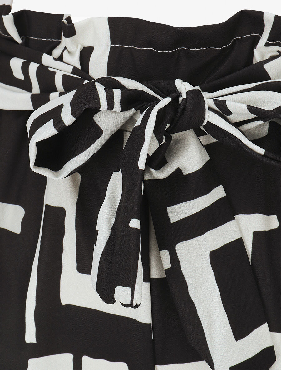 Découvrez ce pantalon fluide à la coupe droite sophistiquée, orné d'un imprimé graphique contemporain. Sa taille haute élastiquée assure un confort optimal tout au long de la journée, tandis que la ceinture à nouer permet d'ajuster la silhouette selon vos envies. Fabriqué en Italie avec un savoir-faire d'exception, ce modèle à enfiler se distingue par sa matière polyester fluide et agréable. Parfait pour composer des tenues urbaines raffinées, ce pantalon s'adapte aussi bien au bureau qu'aux sorties décontractées. Un essentiel polyvalent qui sublime votre garde-robe avec élégance et modernité.