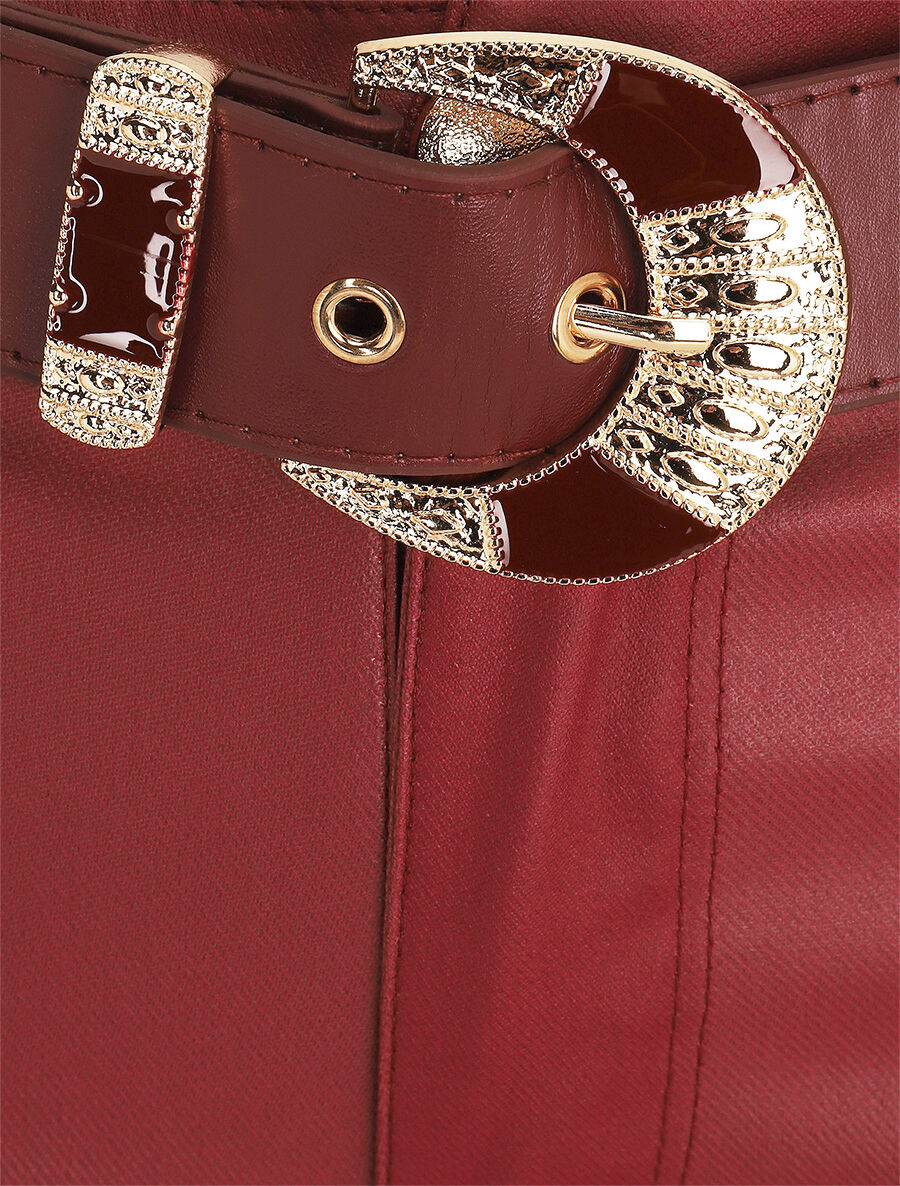 Pantalon uni en simili ceinturé - Bordeaux - 1