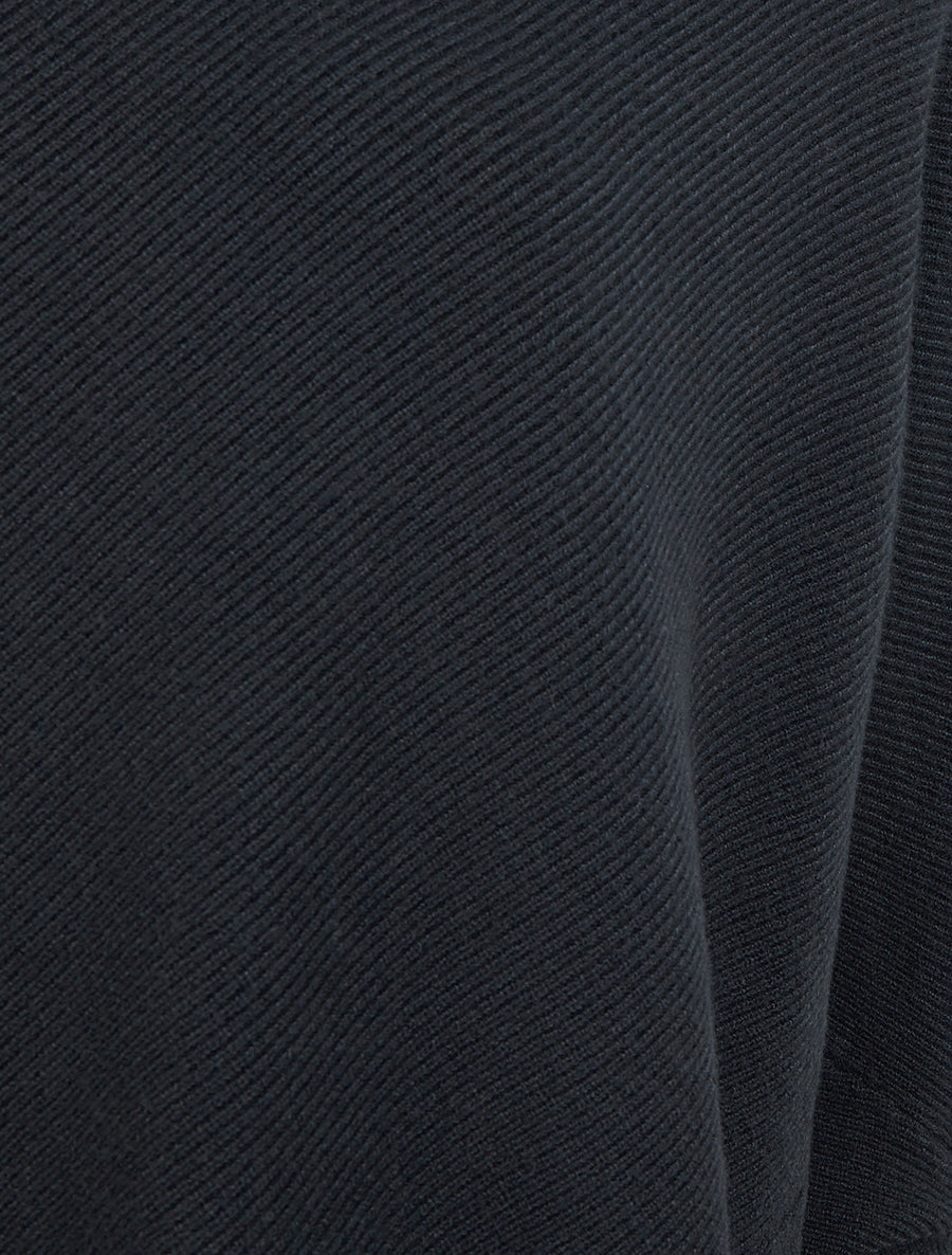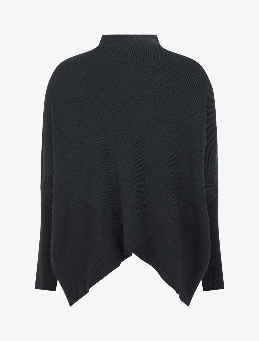 Ce poncho côtelé noir revisite la silhouette avec élégance grâce à sa coupe ample et son bas asymétrique qui apporte une touche moderne. Son col montant protège du froid tandis que ses manches longues style chauve-souris offrent une liberté de mouvement incomparable. La maille côtelée structure la pièce avec raffinement. Parfait pour composer des tenues décontractées-chic au quotidien, il se porte aussi bien sur un jean slim qu'avec une jupe midi. Un essentiel polyvalent qui traverse les saisons avec style.