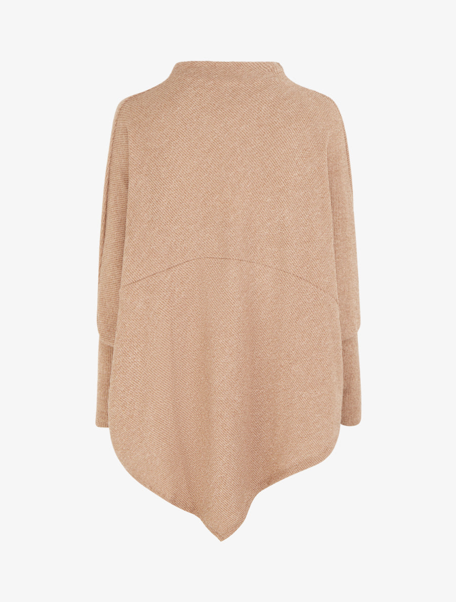 Ce poncho taupe incarne l'élégance décontractée avec sa coupe droite et son col montant raffiné. Confectionné en Italie, il se distingue par ses manches longues chauve-souris et sa maille côtelée qui apportent structure et caractère. Son bas asymétrique crée un jeu de volumes moderne et flatteur. La composition alliant polyester, viscose et élasthanne garantit confort et maintien tout au long de la journée. Parfait pour les entre-saisons, ce poncho se porte aussi bien au bureau qu'en week-end pour un style affirmé et intemporel.