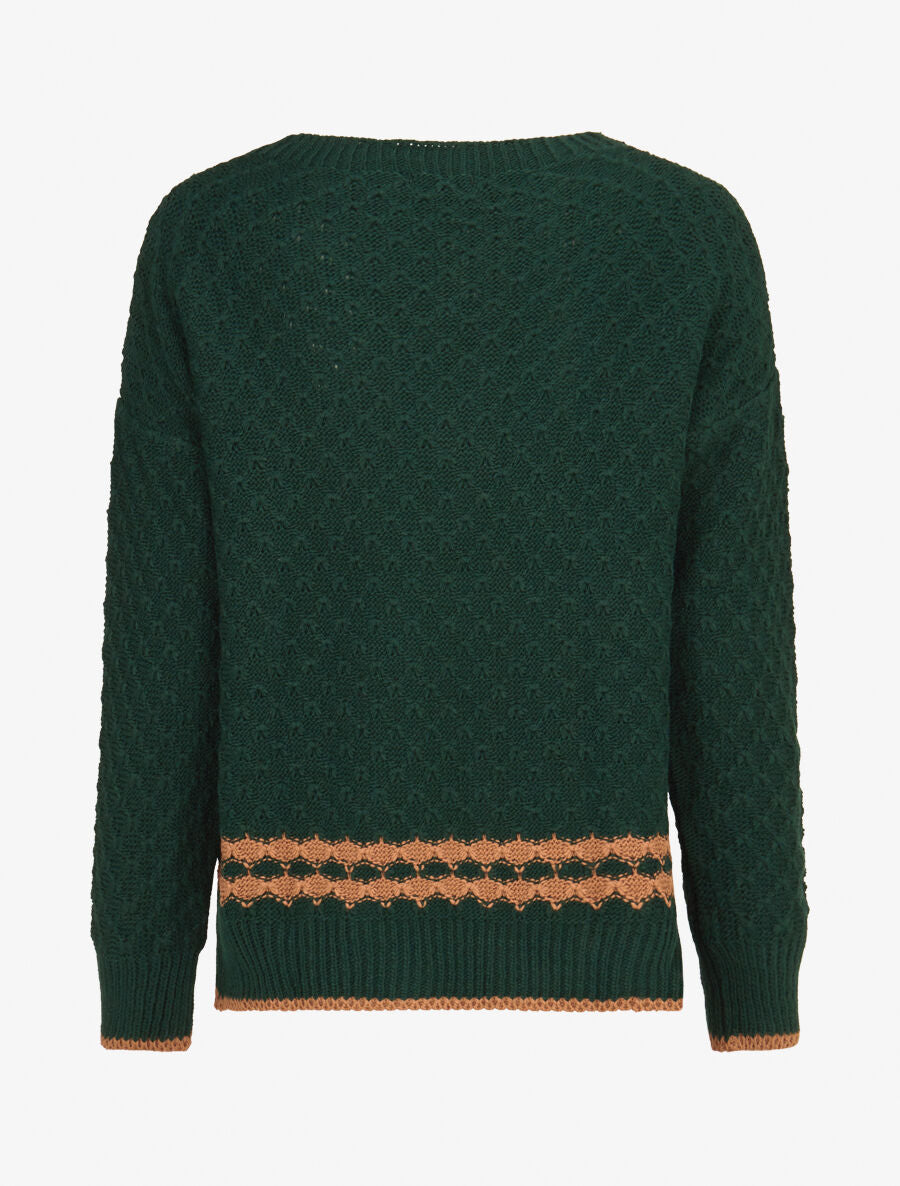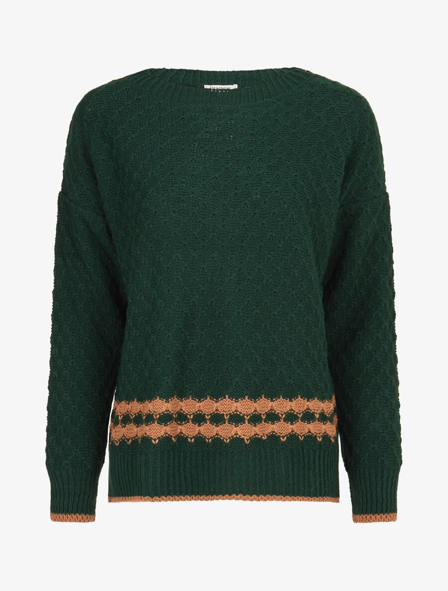 Ce pull vert à la coupe droite séduit par son encolure bateau élégante et ses bords en mailles contrastantes qui apportent une touche moderne. Les finitions côtelées aux poignets et à la base affirment son caractère contemporain. Confectionné en acrylique doux, il garantit confort et facilité d'entretien au quotidien. Fabriqué en Italie avec un savoir-faire authentique, ce pull aux manches longues devient l'allié idéal pour composer des tenues décontractées raffinées. Sa polyvalence permet de l'associer aussi bien à un jean qu'à une jupe pour un style actuel et soigné.