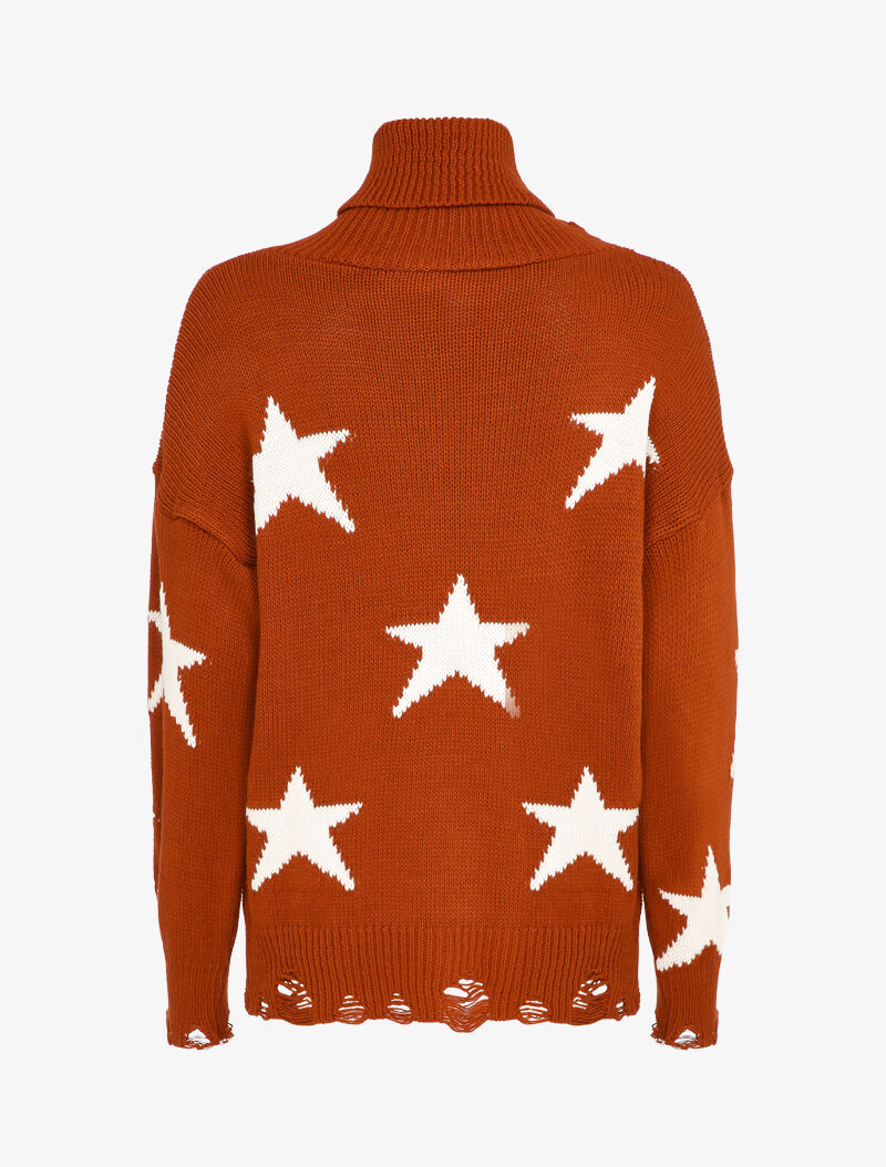Pull à col roulé à bords effilochés et imprimé étoiles - Rouille - 2